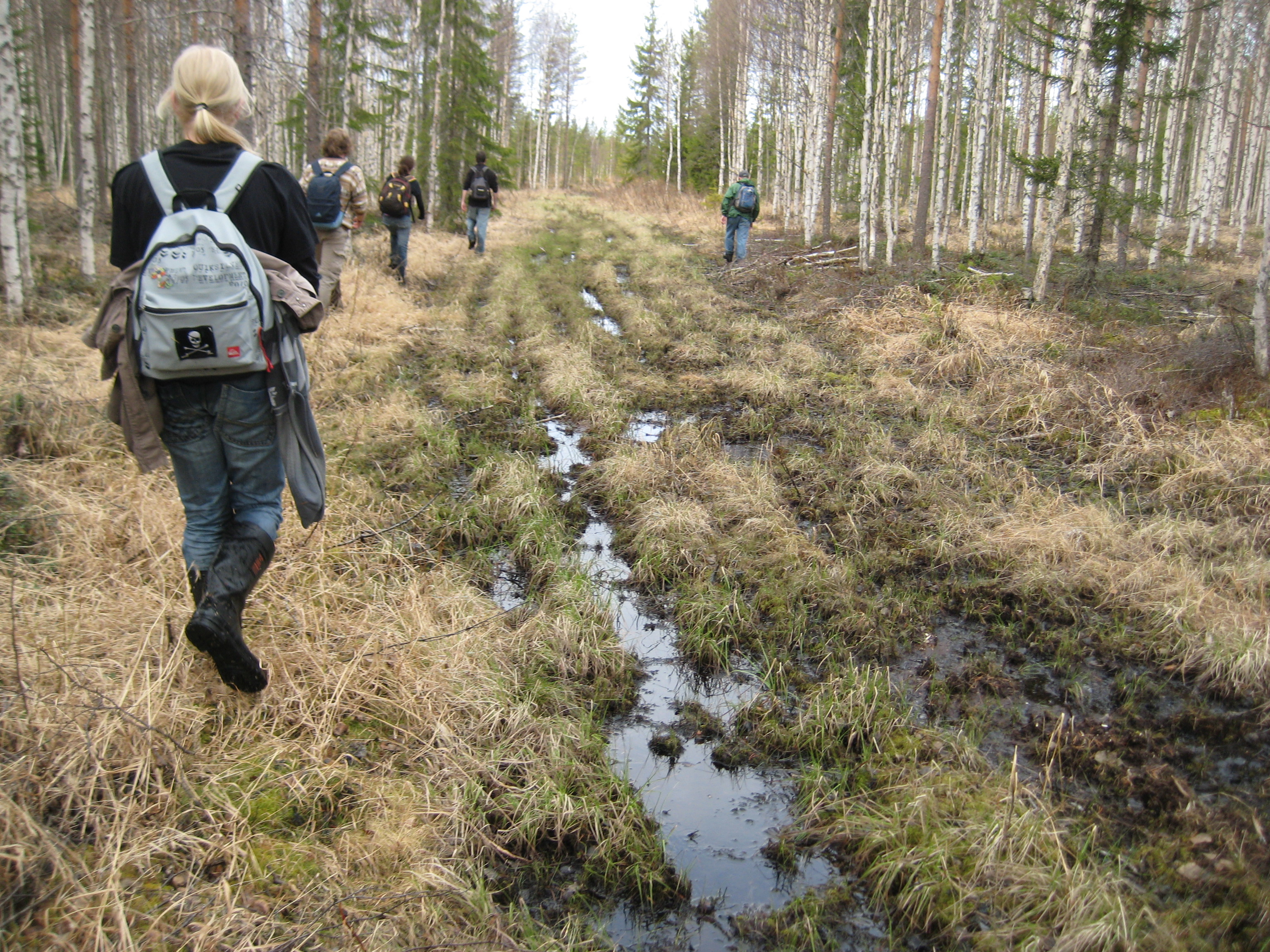The road is wet. Michael Wing: "You can't really walk on it." On survey in the Finnish Woods, Finland.