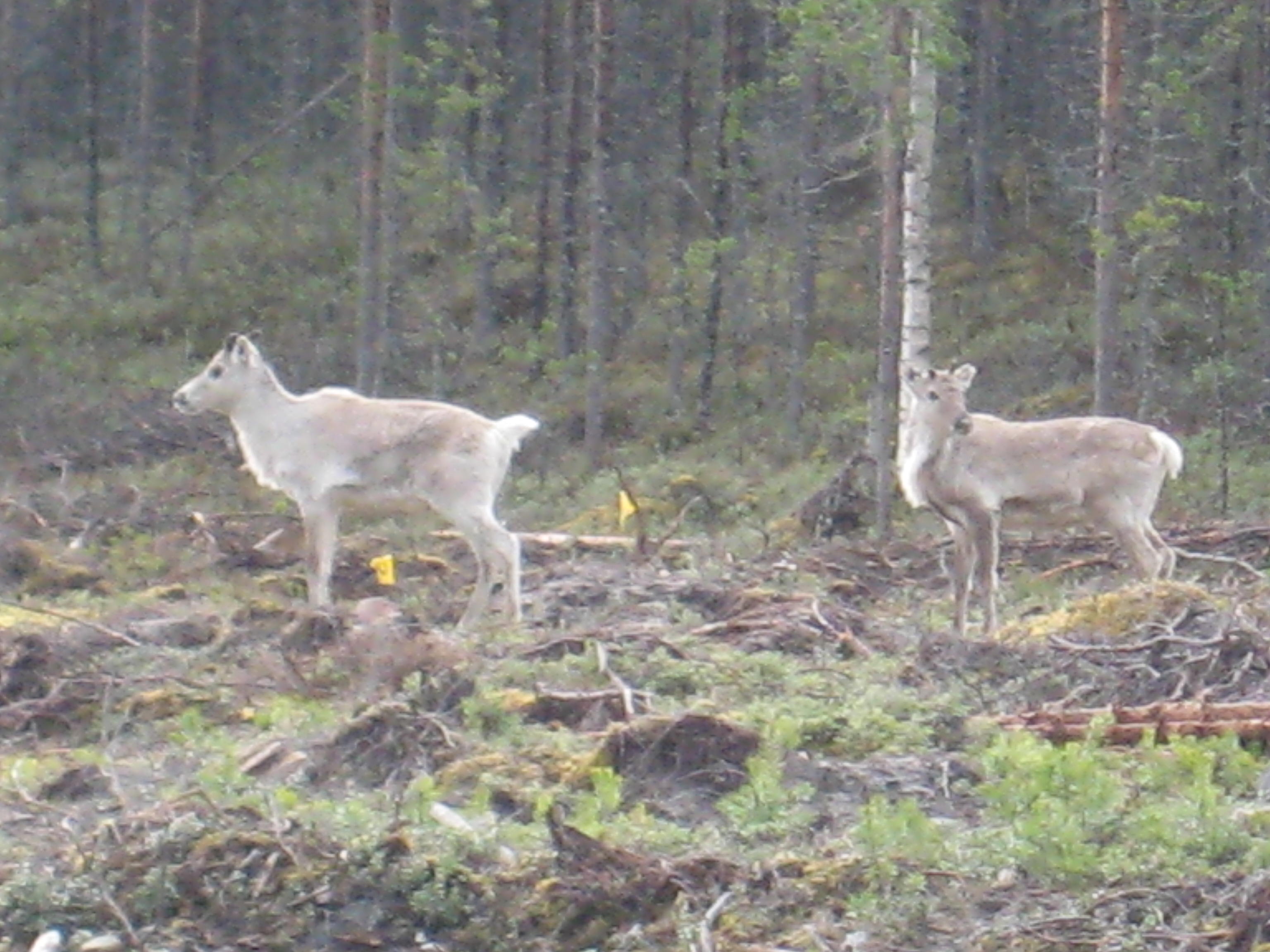 Two reindeer at the site called Hiidenkangas, near Haukipudas, Finland.