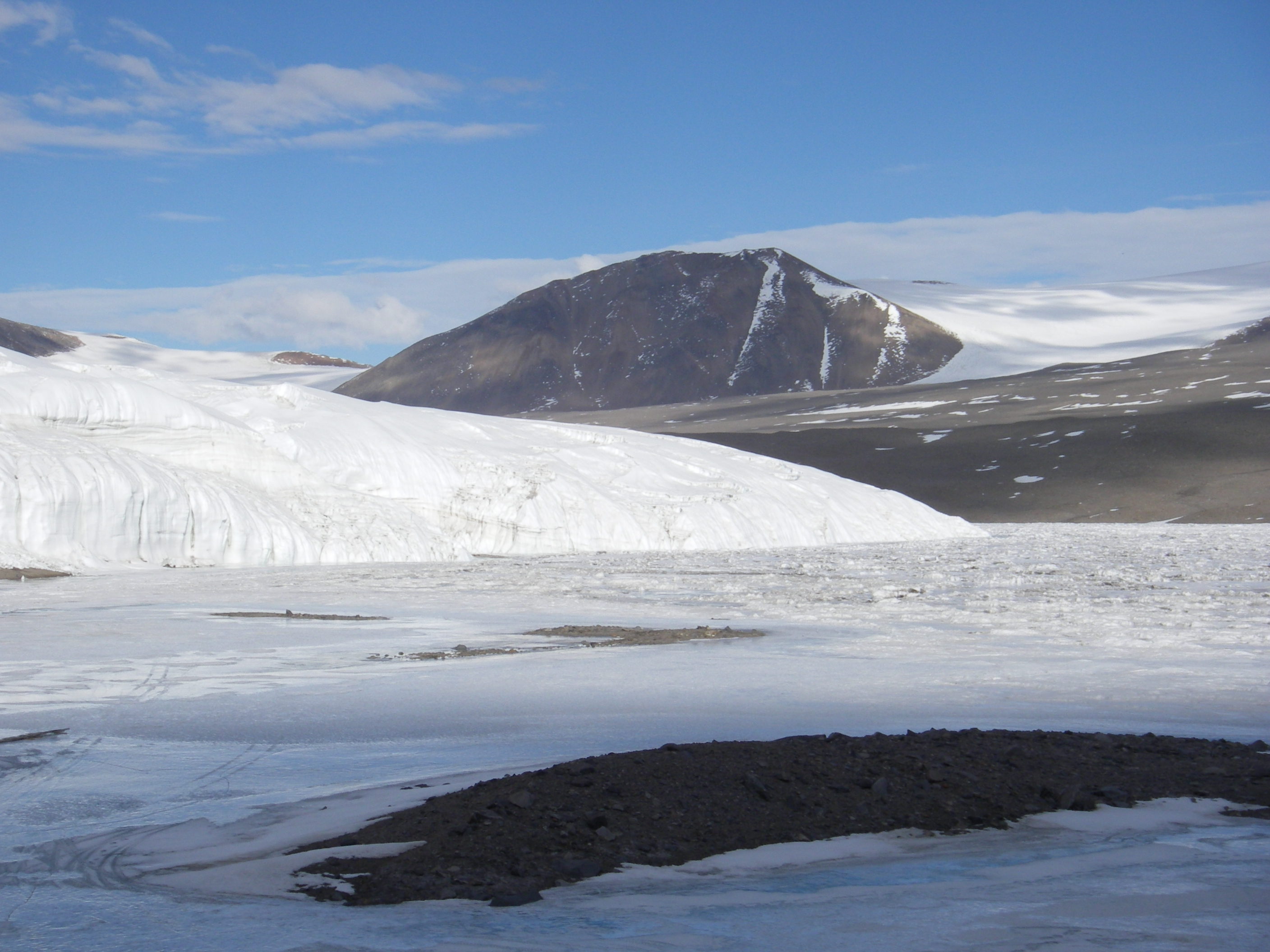 Base of the Canada Glacier. Lake Hoare in front of the Canada Glacier, McMurdo Dry Valleys, Antarctica.