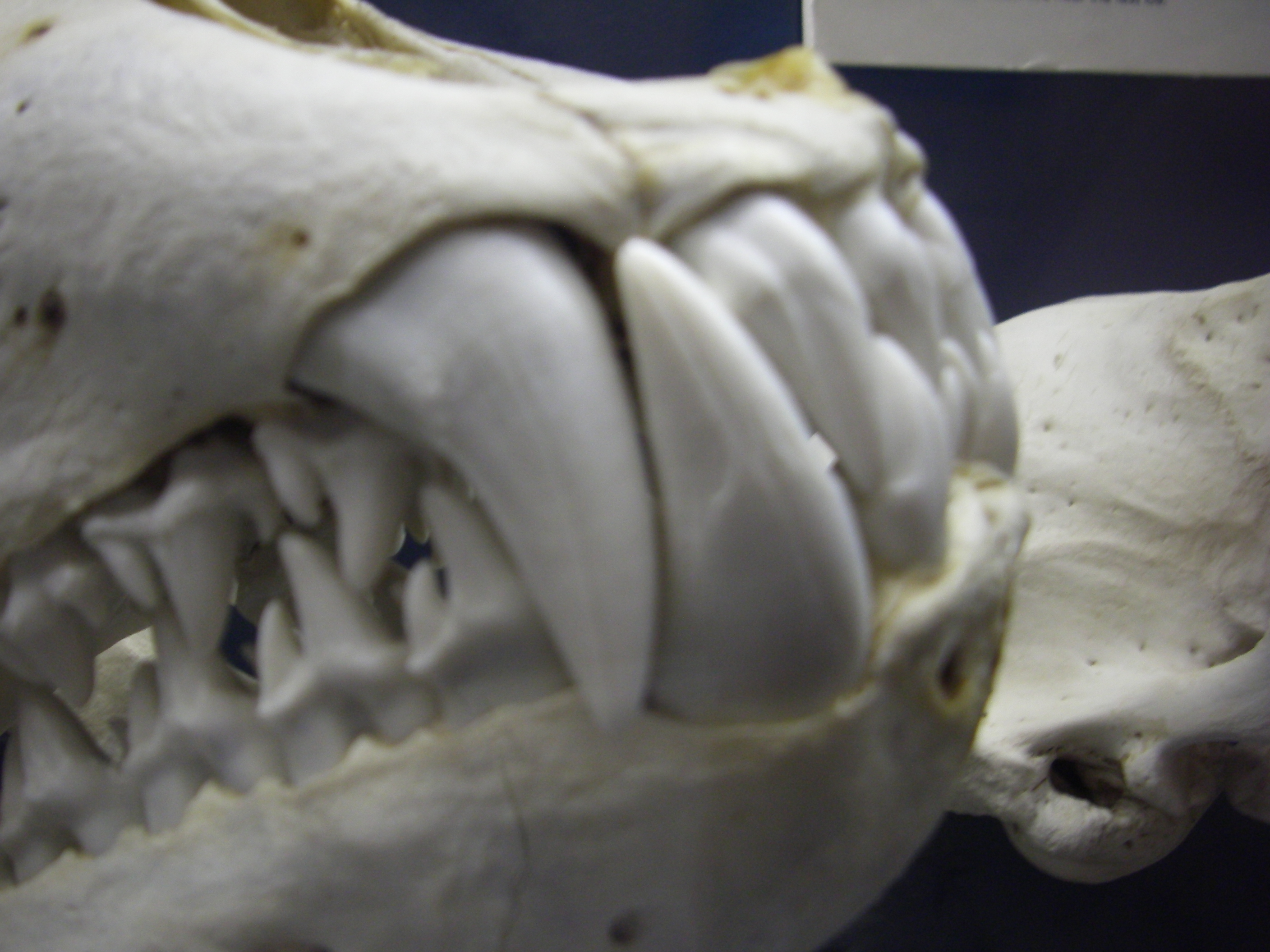 The teeth of the leopard seal help them in hunting and killing their prey, which includes penguins. McMurdo Station, Antarctica.