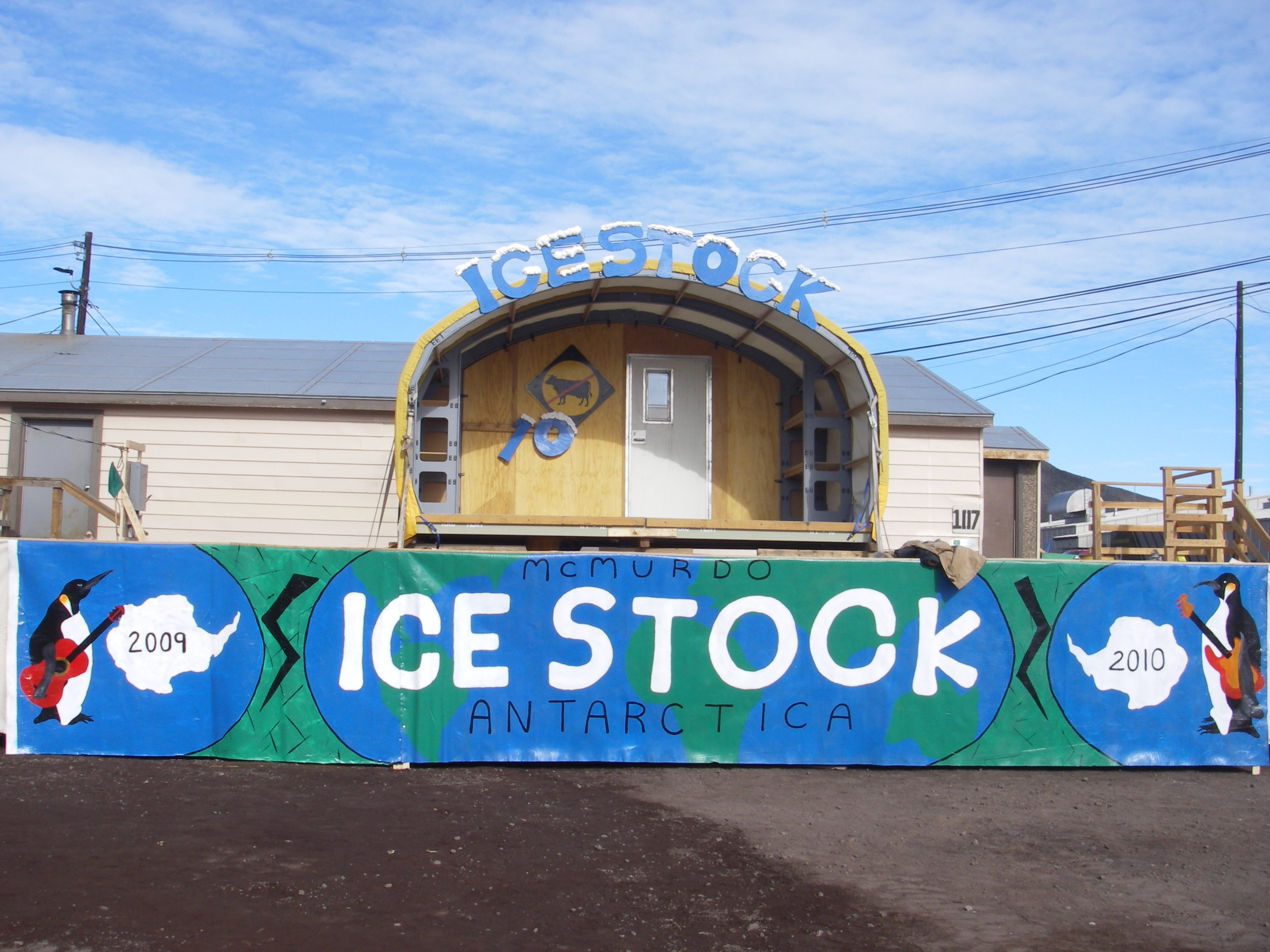 The concert mural at the Ice Stock music festival in McMurdo Station, Antarctica.
