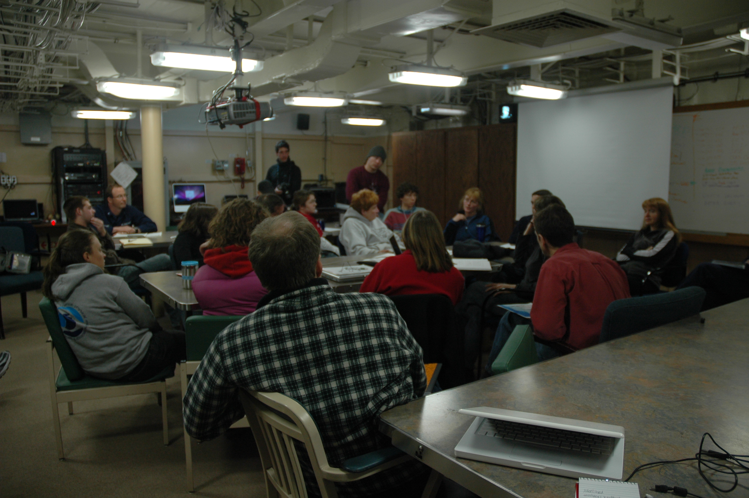 The lounge is where the scientists come together to plan their work. Aboard the USCGC Healy icebreaker, on the Bering Sea.