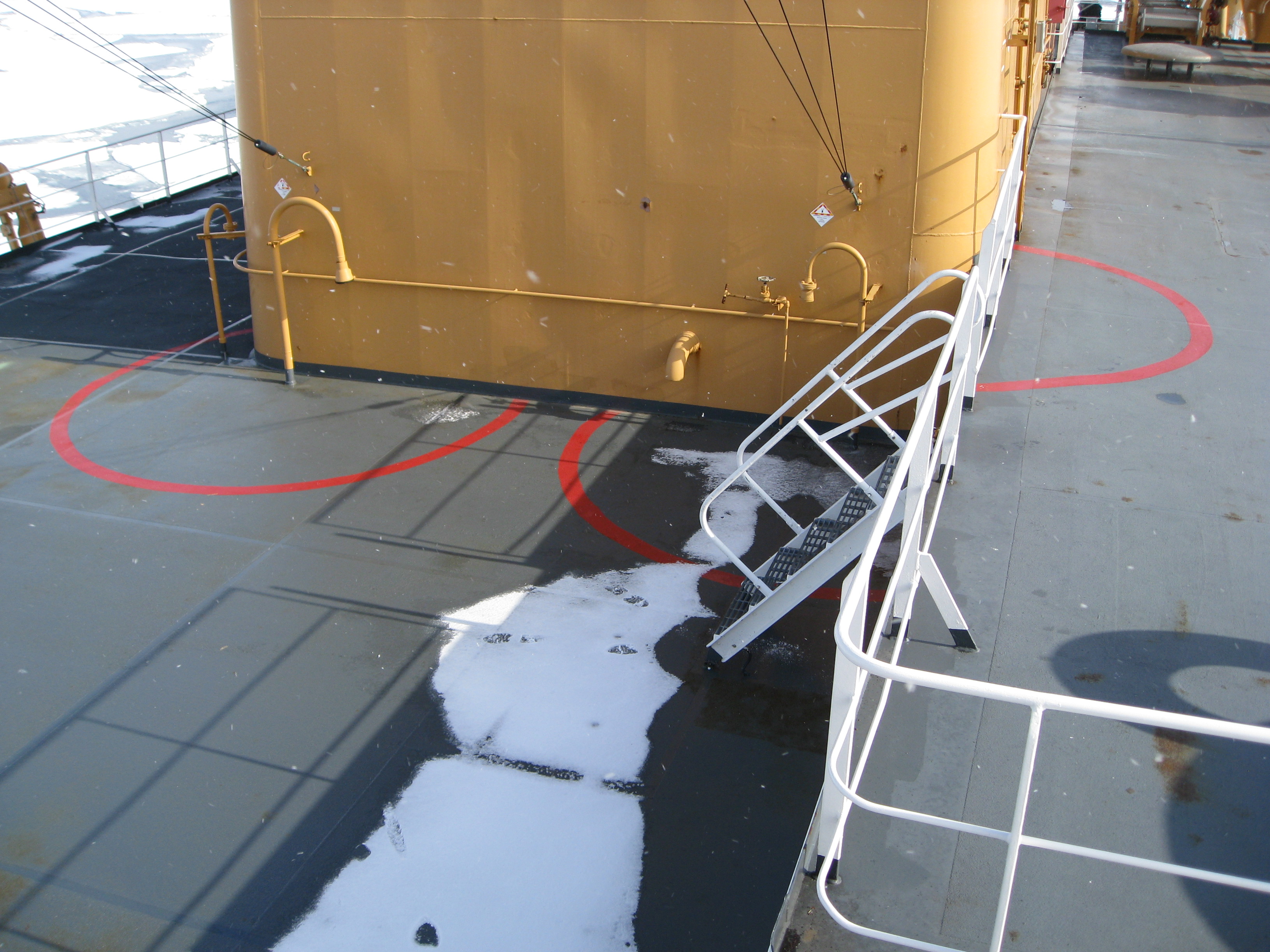 Red danger zone circles. Aboard the USCGC Healy icebreaker, on the Bering Sea.