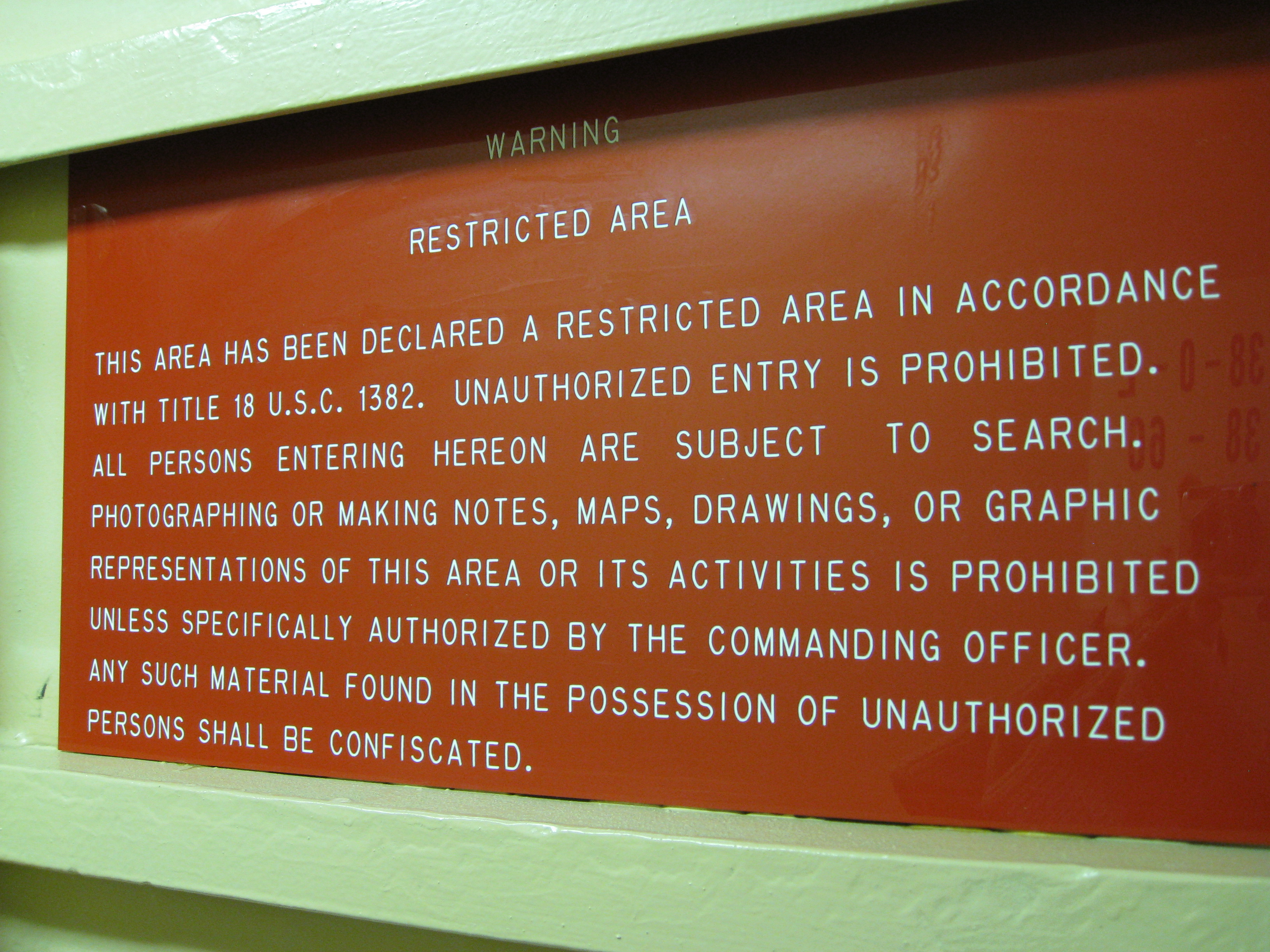 Restricted Area sign. Aboard the USCGC Healy icebreaker, on the Bering Sea.