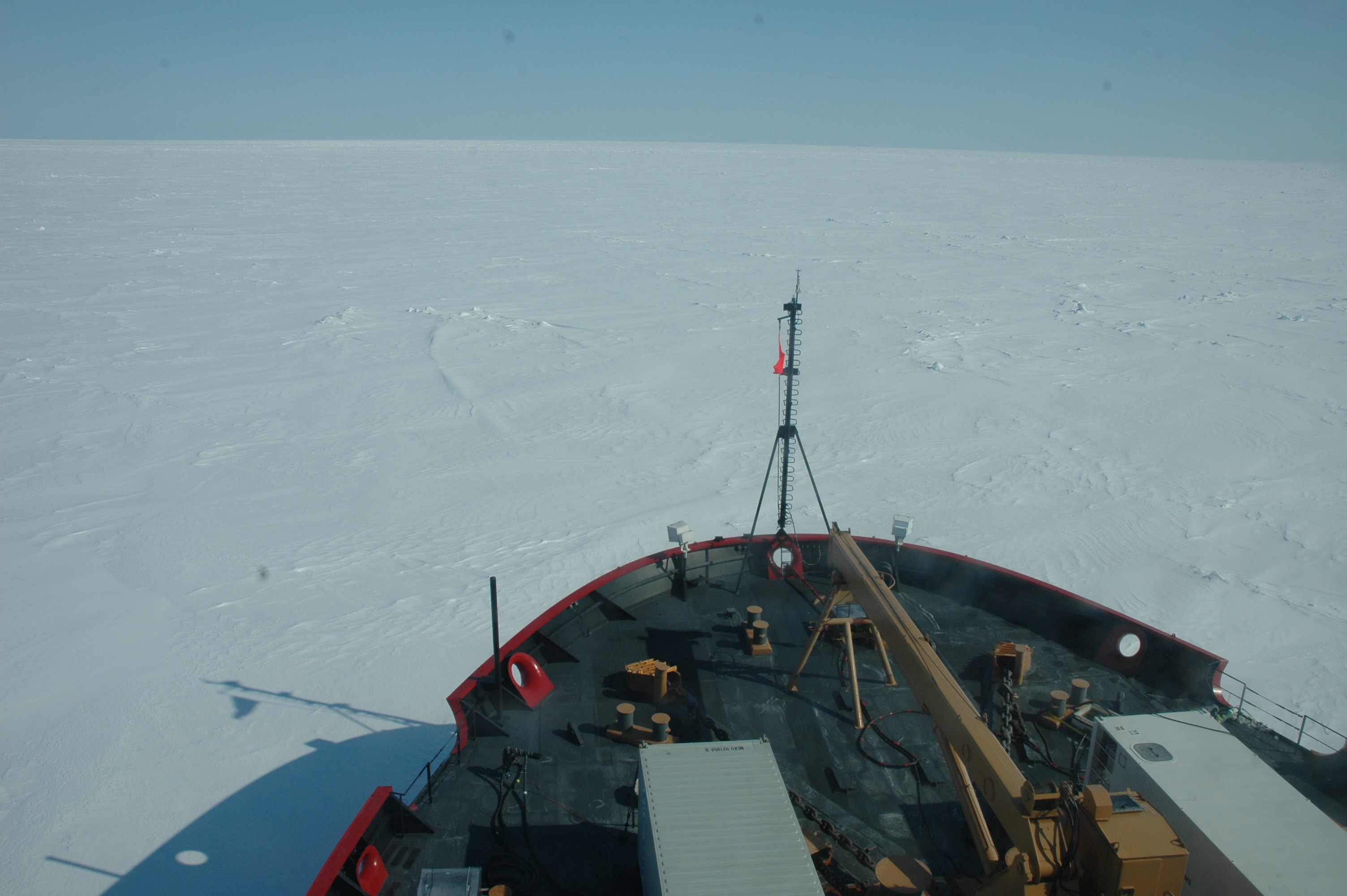 Back in the thick of it. It looked as if the ship were moving on top of land covered with snow. Aboard the USCGC Healy icebreaker, on the Bering Sea.