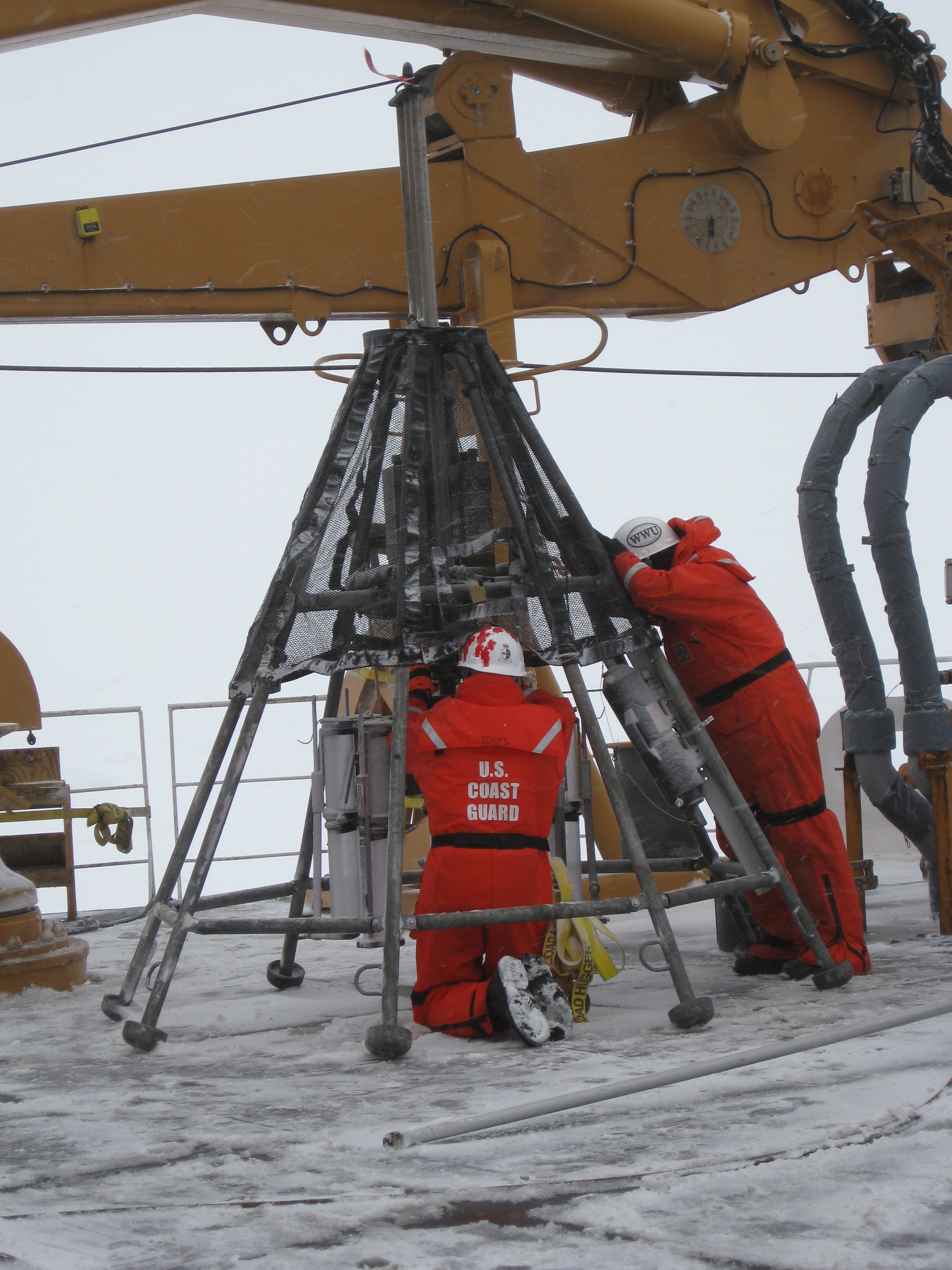 The multi-corer is what the team lowers into the water to collect the sediment samples. Aboard the USCGC Healy icebreaker, on the Bering Sea.