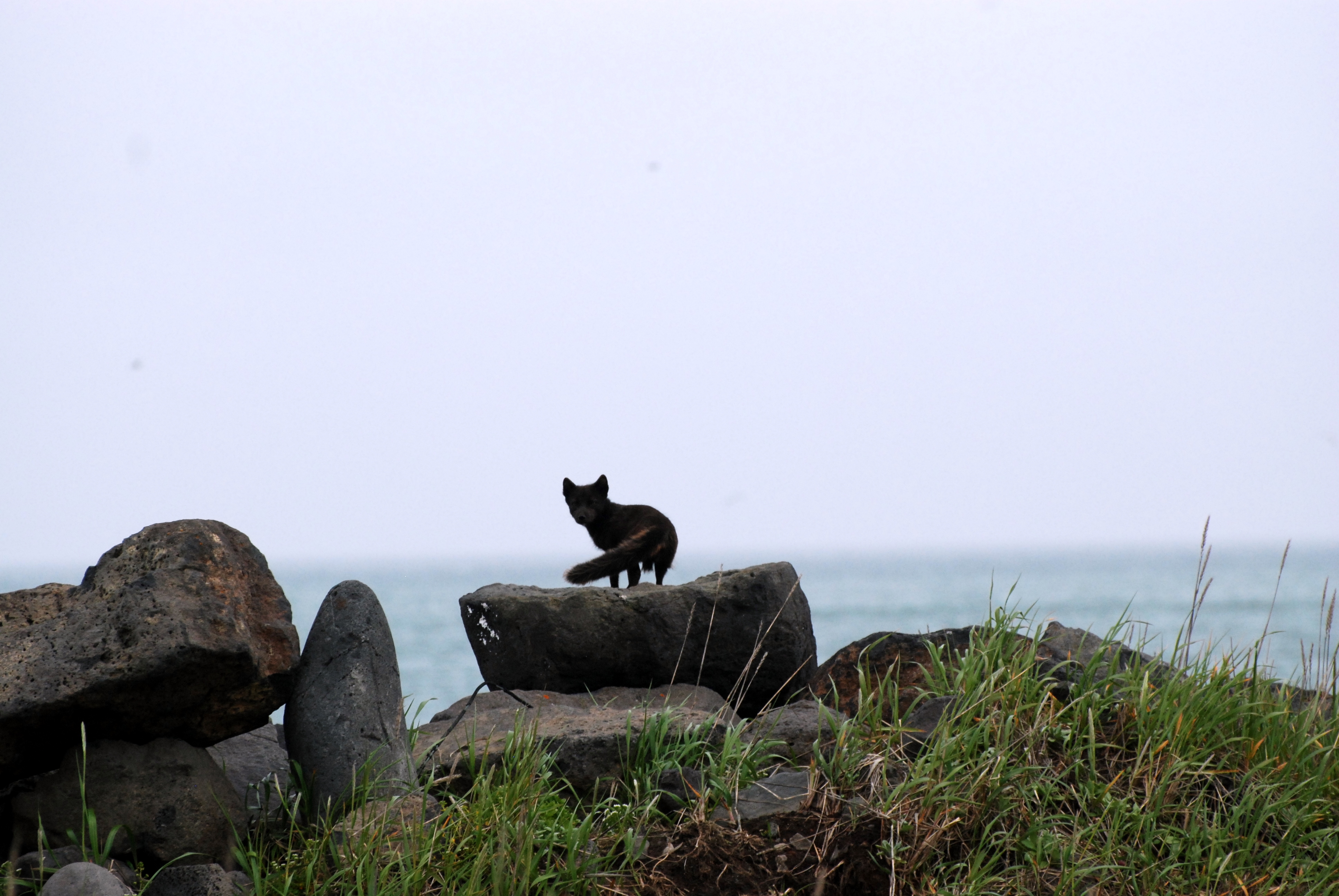 A fox on some rocks on Saint Paul Island, Pribilof Islands, Alaska.
