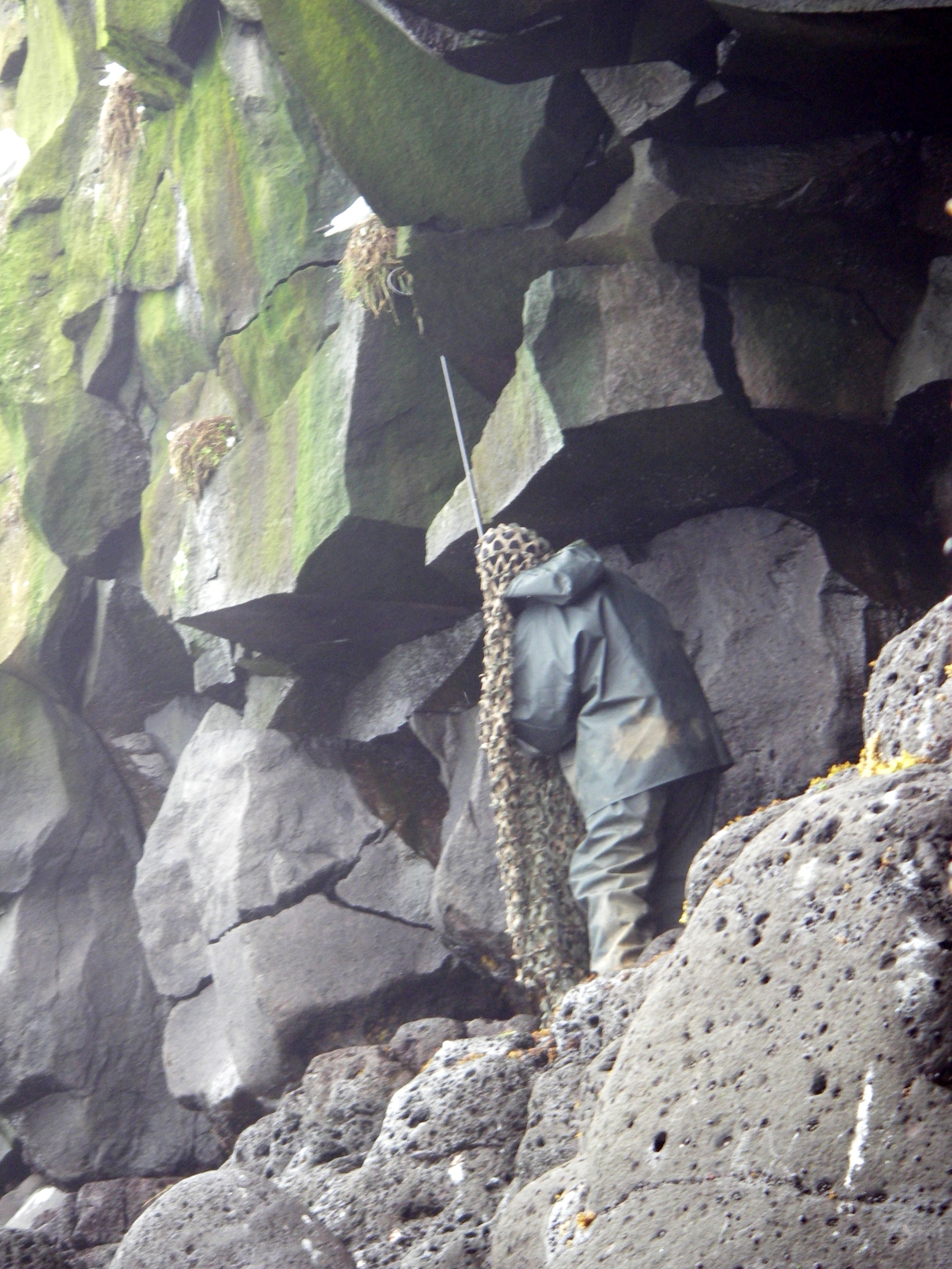 Using the bird noose to try and catch a bird. Saint Paul Island, Pribilof Islands, Alaska.