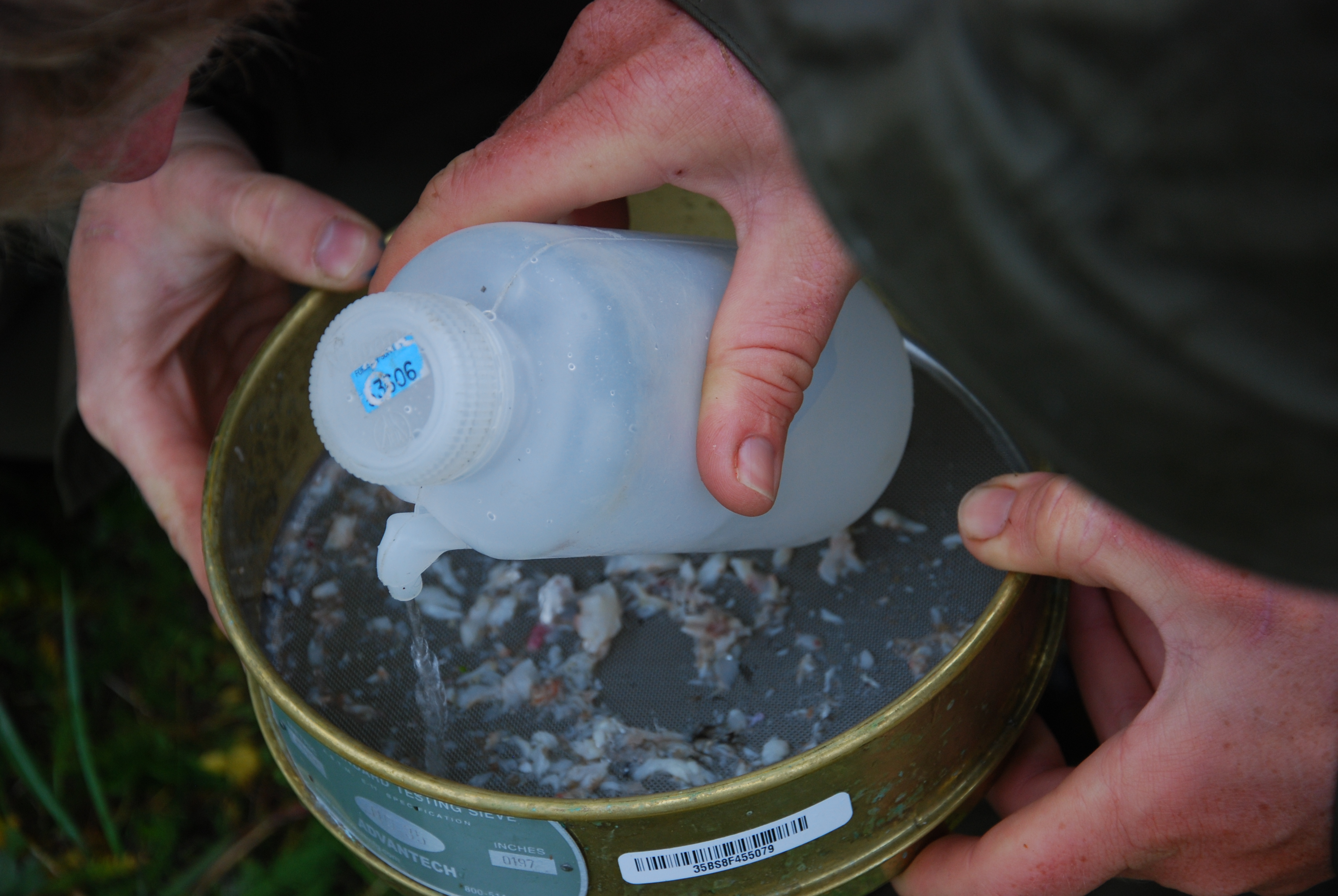 John Warzybok and Dan Cushing work on a lavage sample. Saint Paul Island, Pribilof Islands, Alaska.