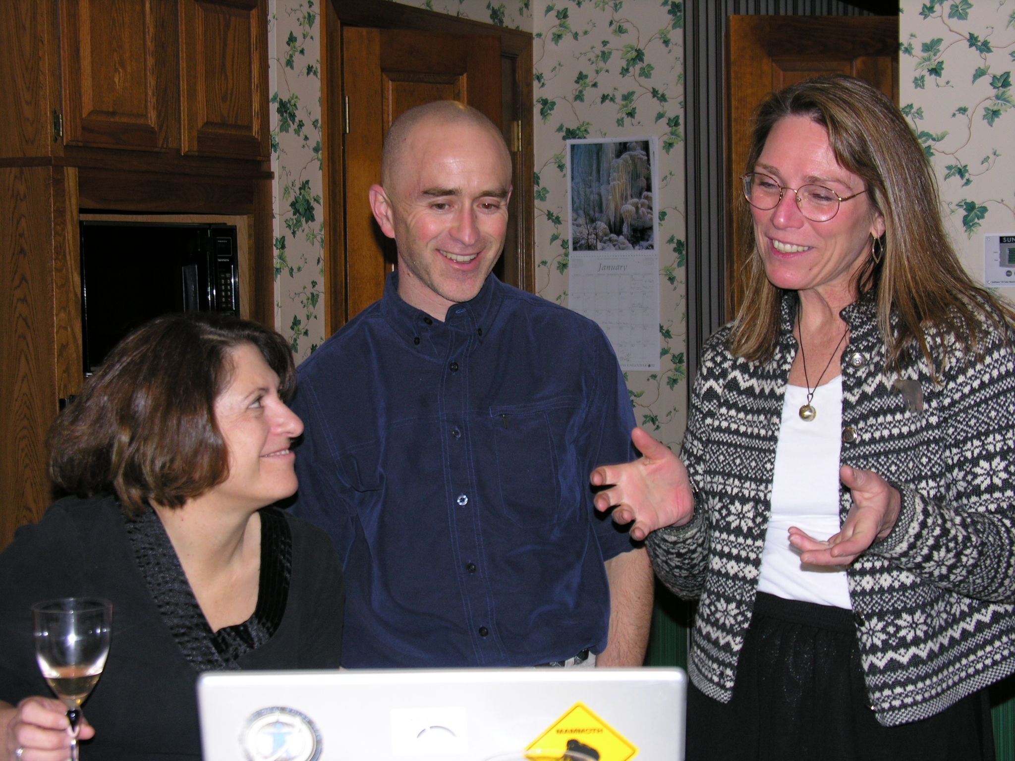 Lori Willard, Tim Martin, and Dr. Julie Brigham-Grette discuss their expedition plans at Tim Martin's home in Browns Summit, North Carolina.