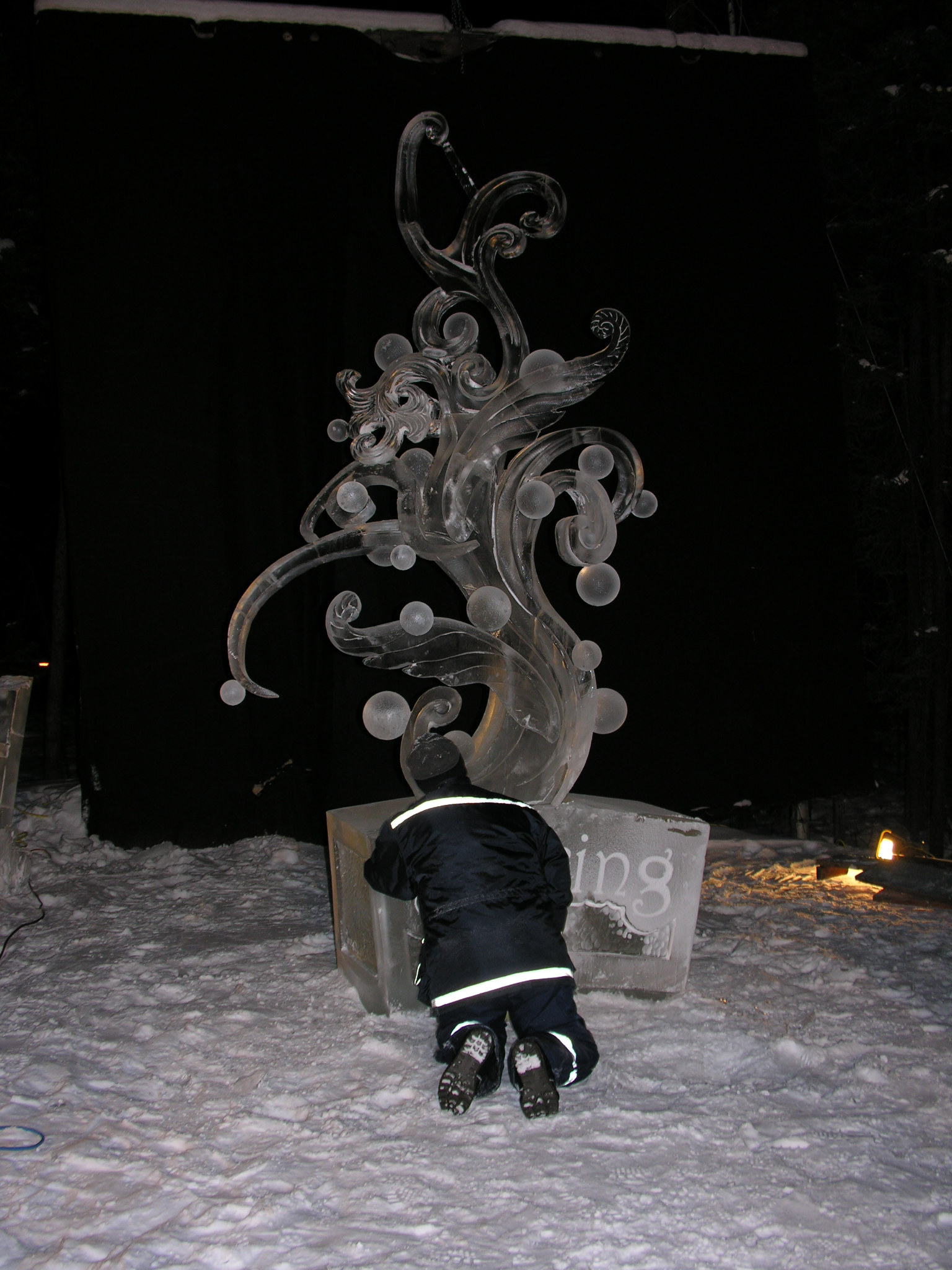 This is the 1st place ice sculpture for the 'abstract ice sculpture' category at the World Ice Art Championships in Fairbanks, Alaska.