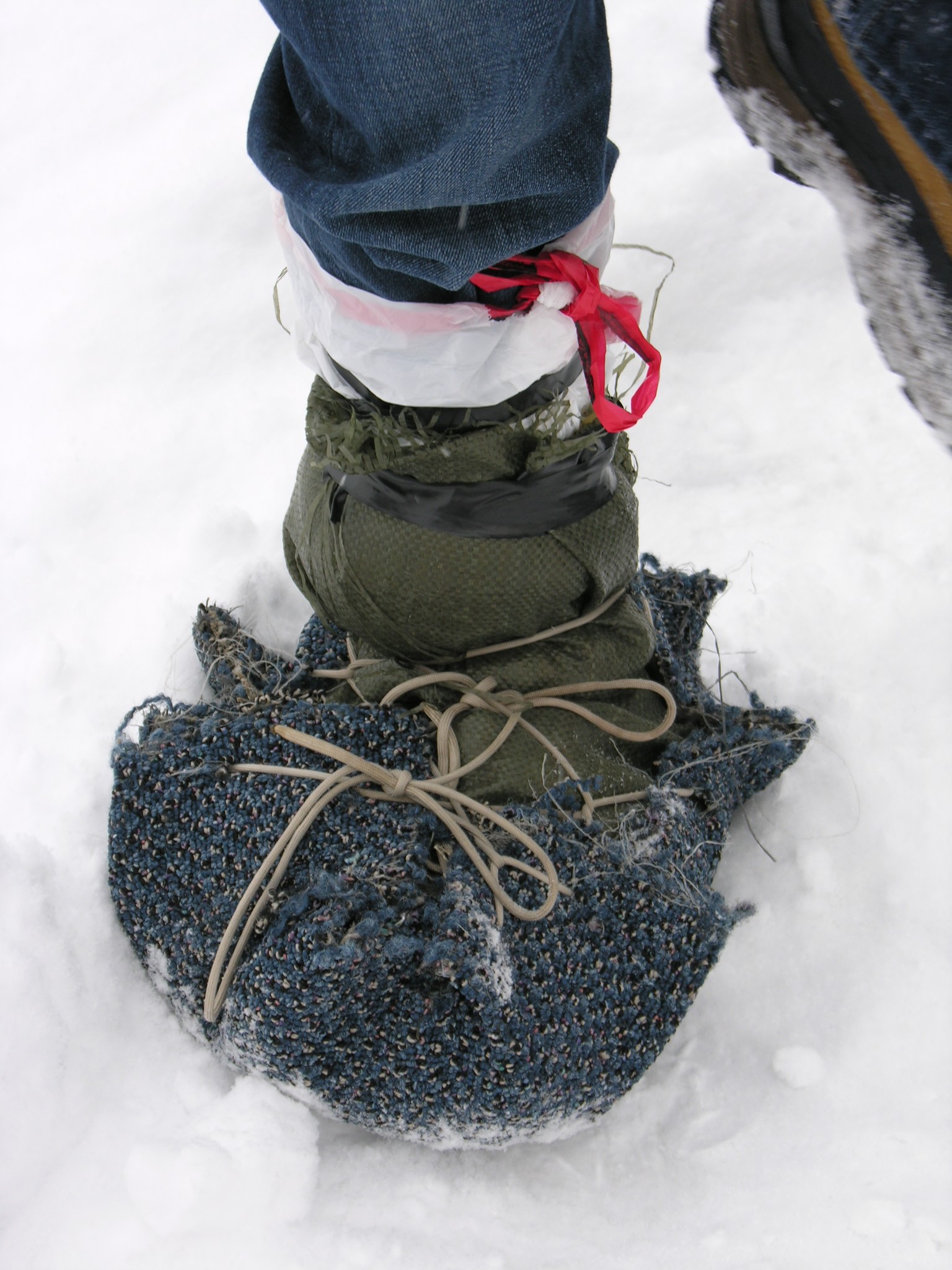 Casey O'Hara's finished crash site boot. Outside of the Westmark Hotel in Fairbanks, Alaska.