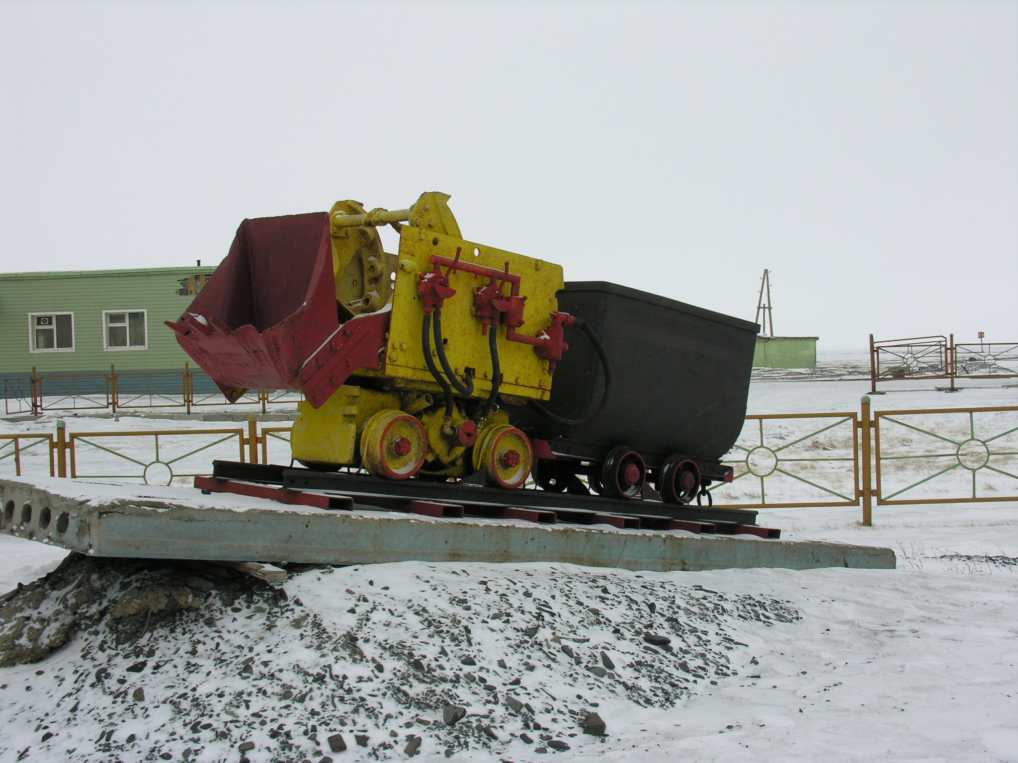 Historic mining equipment at the Pevek museum. Mining is very important in the Chukotka region of Russia. Pevek, Russia.