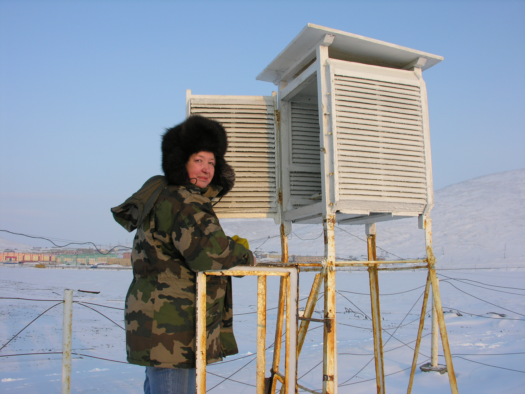 Valentina Romanova measures the temperature at the Pevek Meteorological Station in Pevek, Russia.