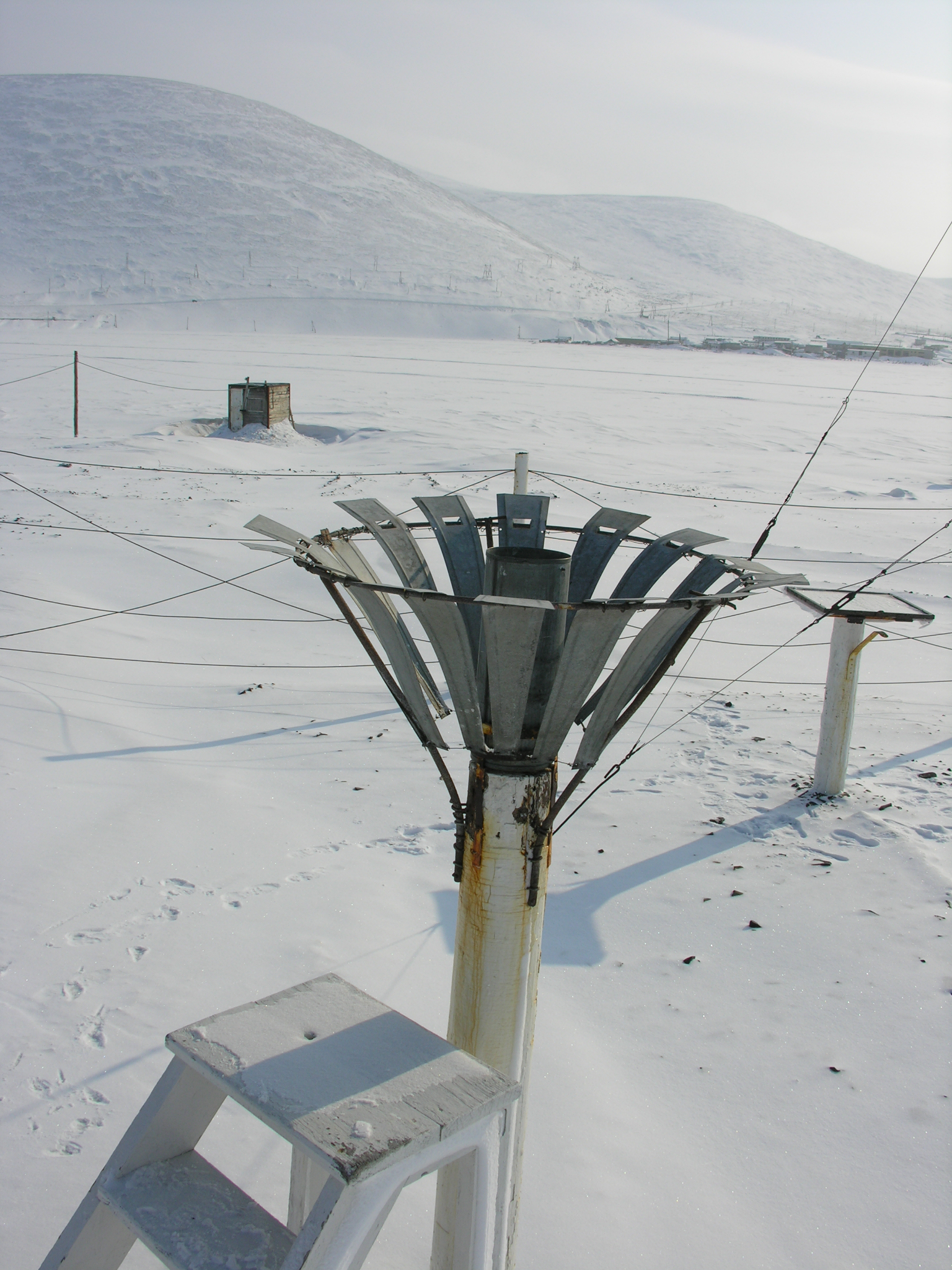 A precipitation gauge at the Pevek Meteorological Station in Pevek, Russia.
