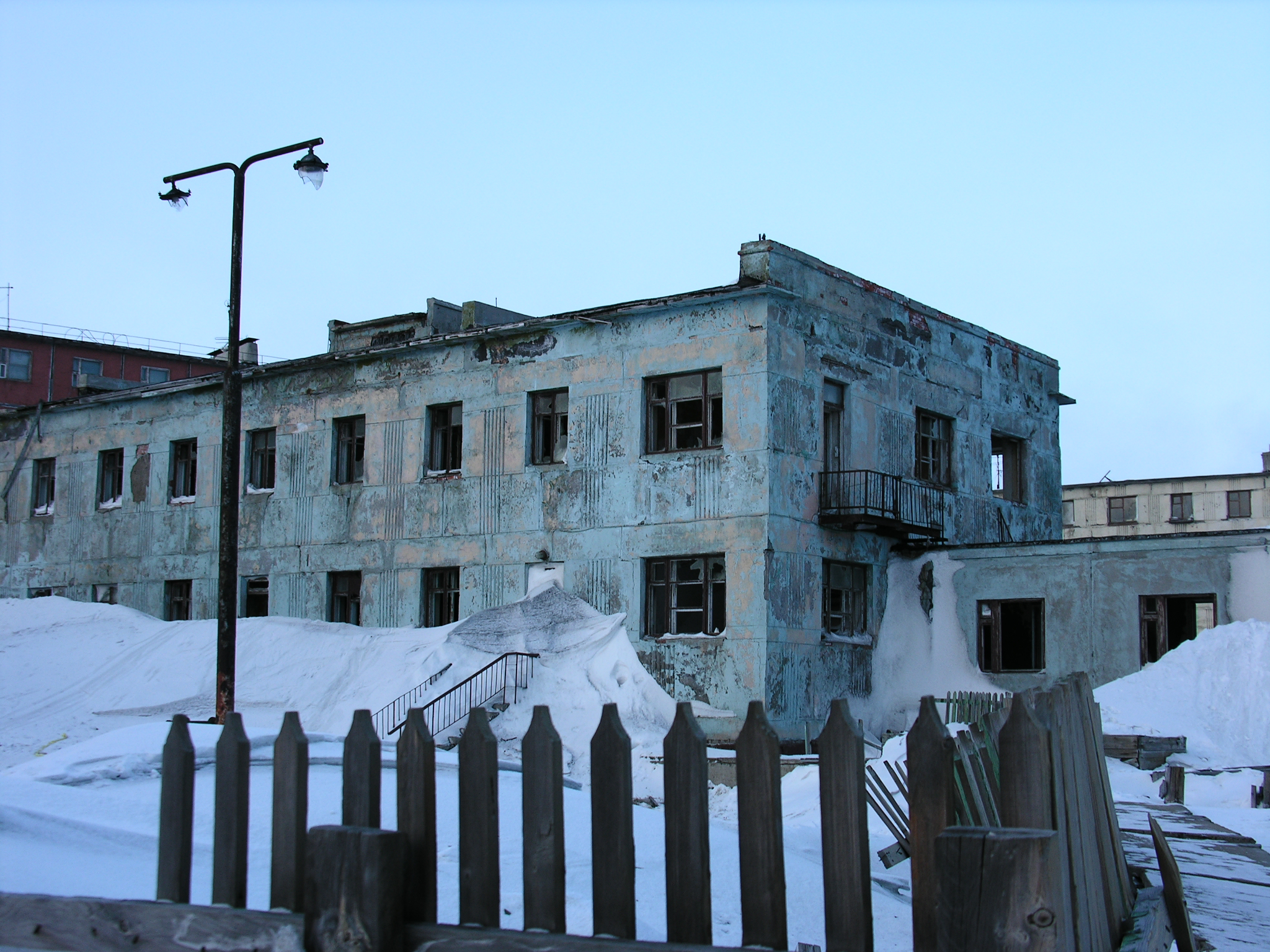 Abandoned apartments near the Pevek Meteorological Station in Pevek, Russia.