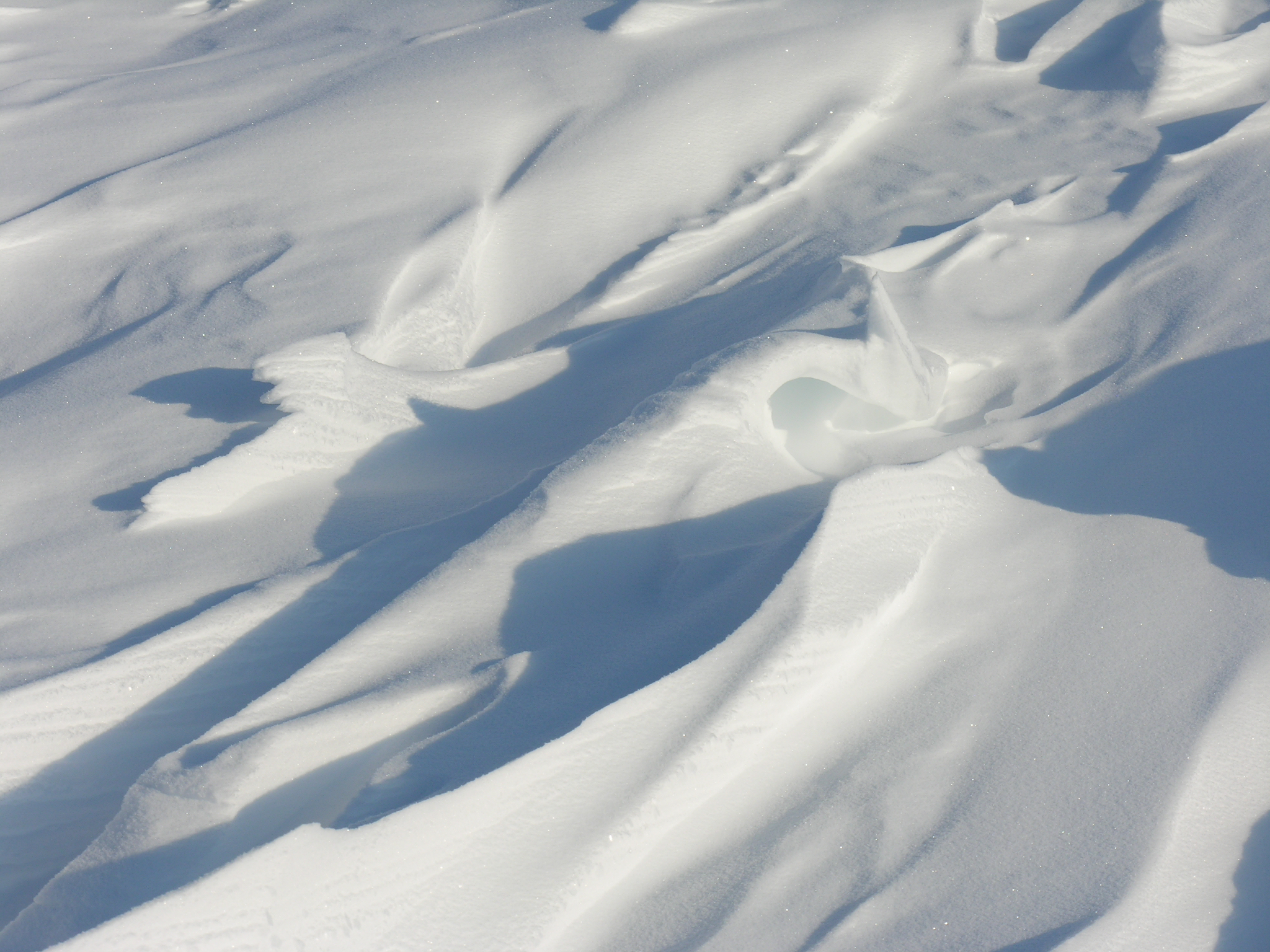 Snowdrift sculptures formed by wind. At the drilling site at Lake El'gygytgyn, Chukotka, Russia.