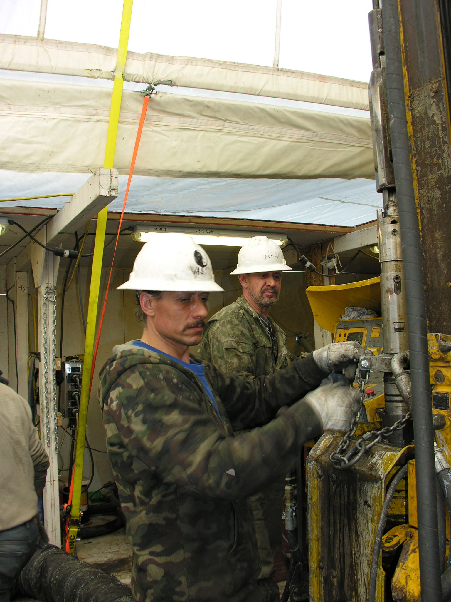 Russian drillers Roman and Vasilli. At the drilling site at Lake El'gygytgyn, Chukotka, Russia.