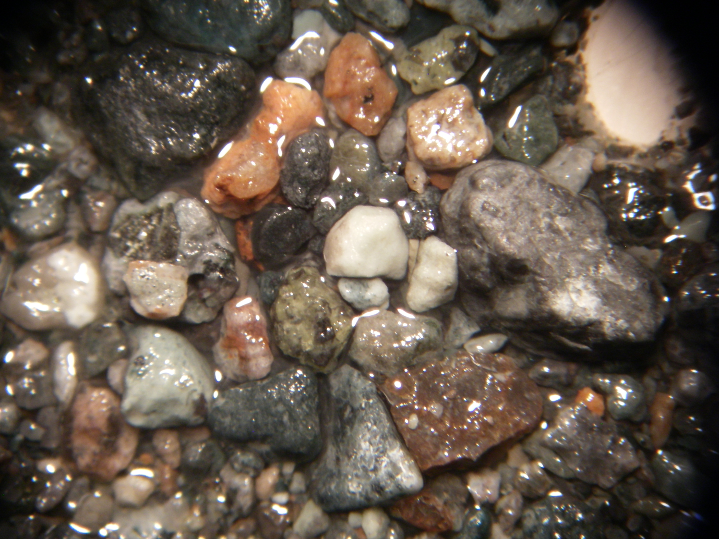 Sandy sediment under a microscope. At the drilling site at Lake El'gygytgyn, Chukotka, Russia.