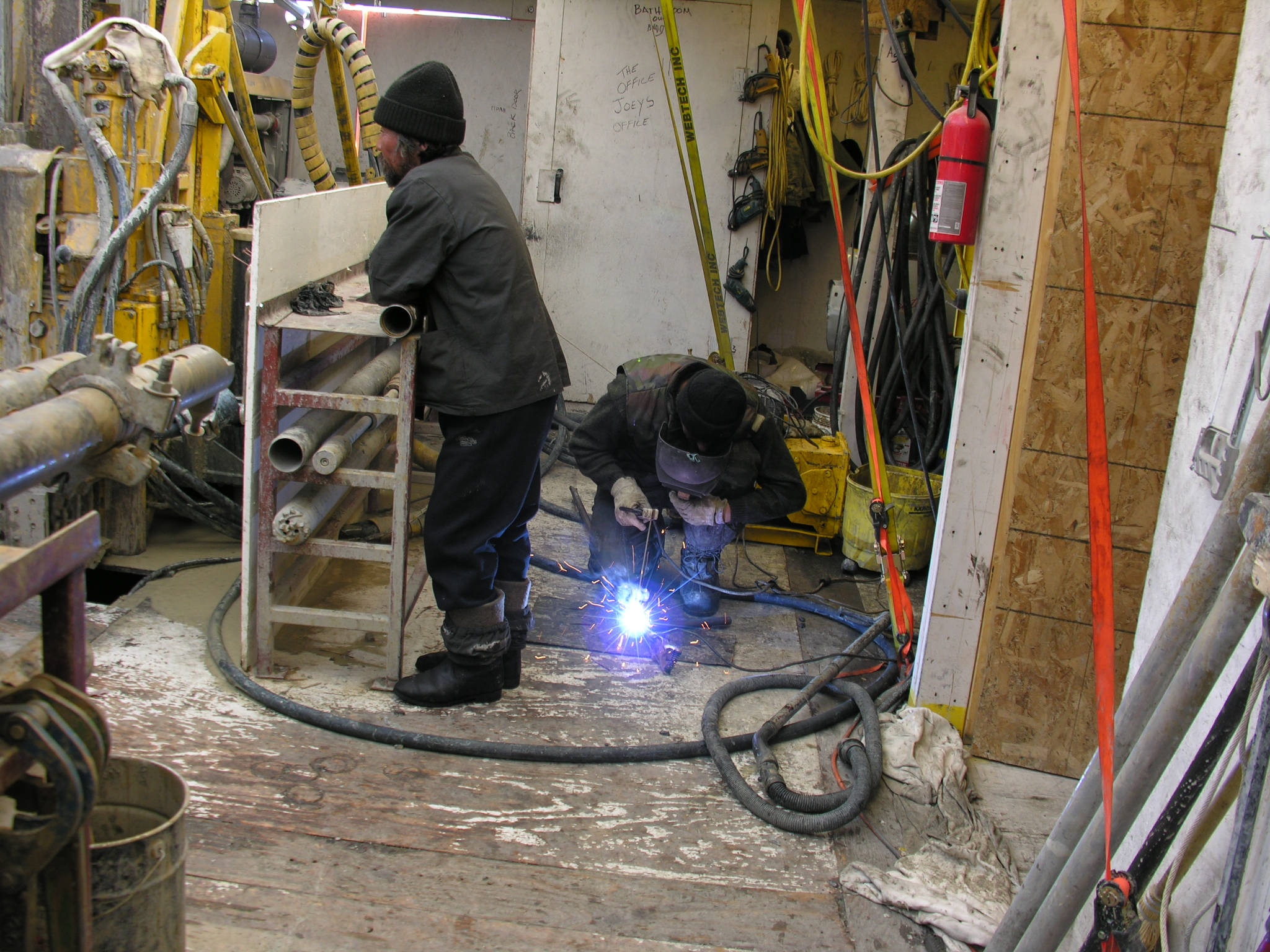 Vasilli fabricates a new tool for use on the drilling platform. At the drilling site at Lake El'gygytgyn, Chukotka, Russia.