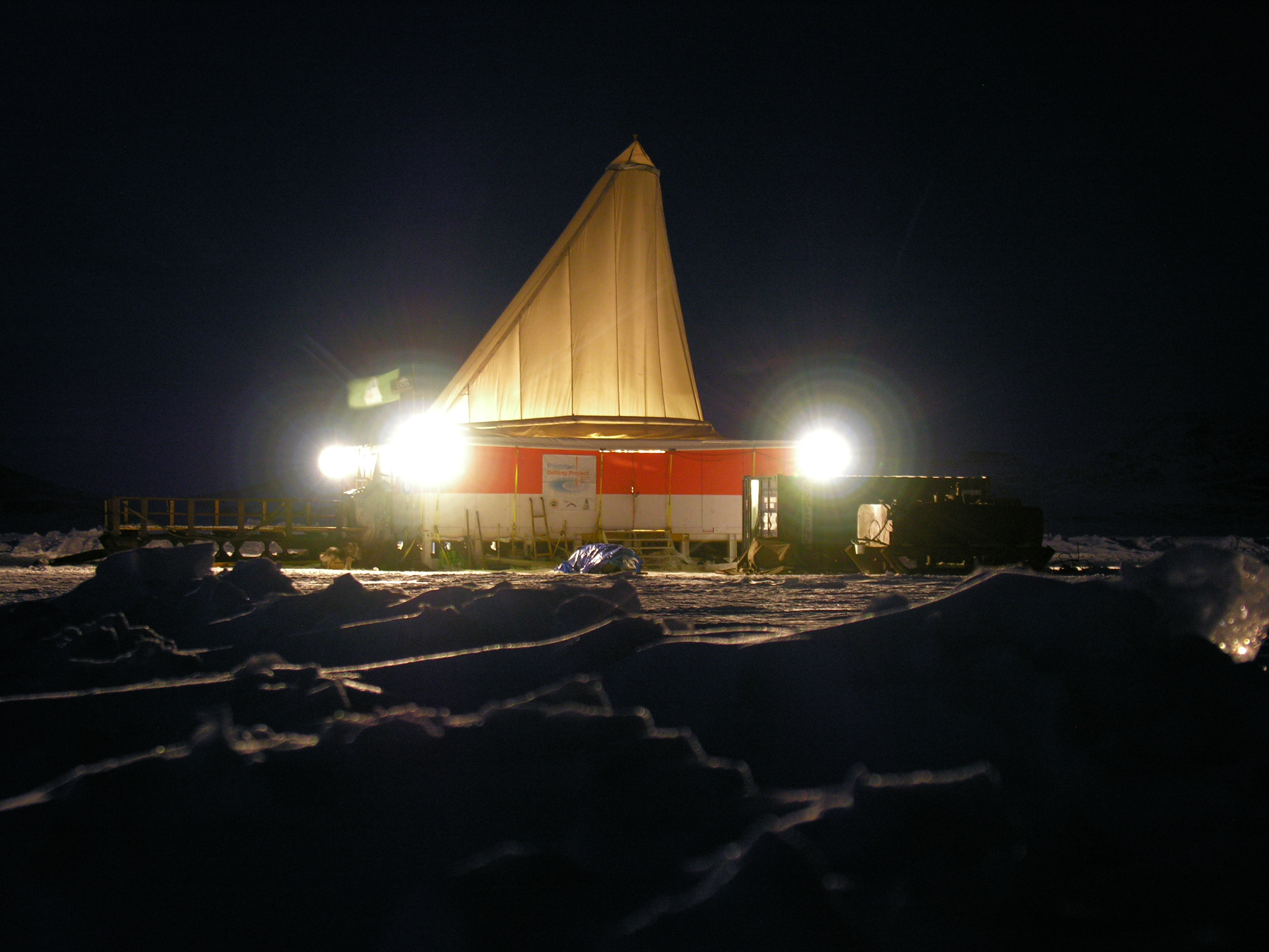 Nighttime at the drilling site at Lake El'gygytgyn, Chukotka, Russia.