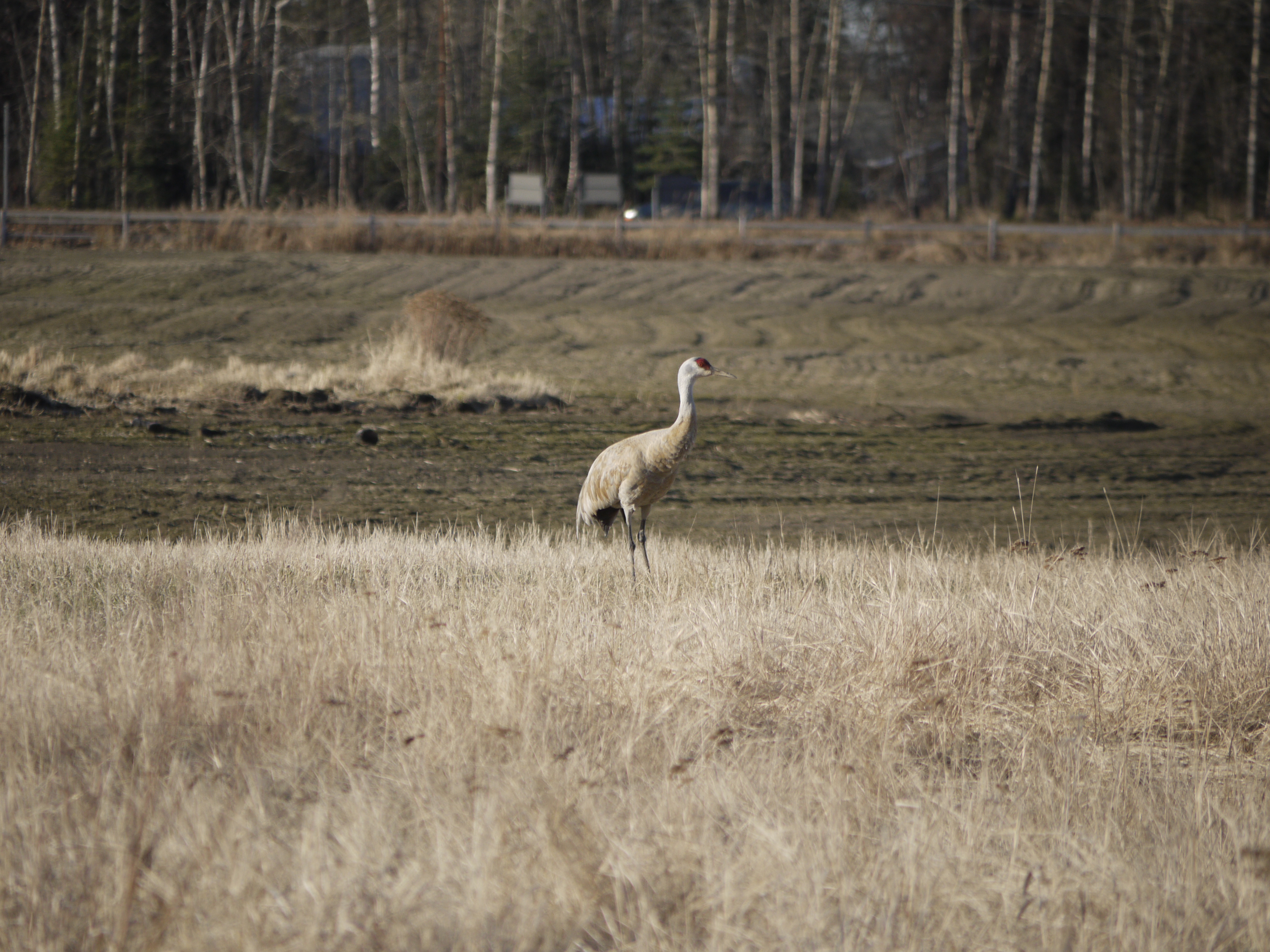 A Lesser Sandhill Crane at Creamer's Field Migratory Waterfowl Refuge in Fairbanks, Alaska.