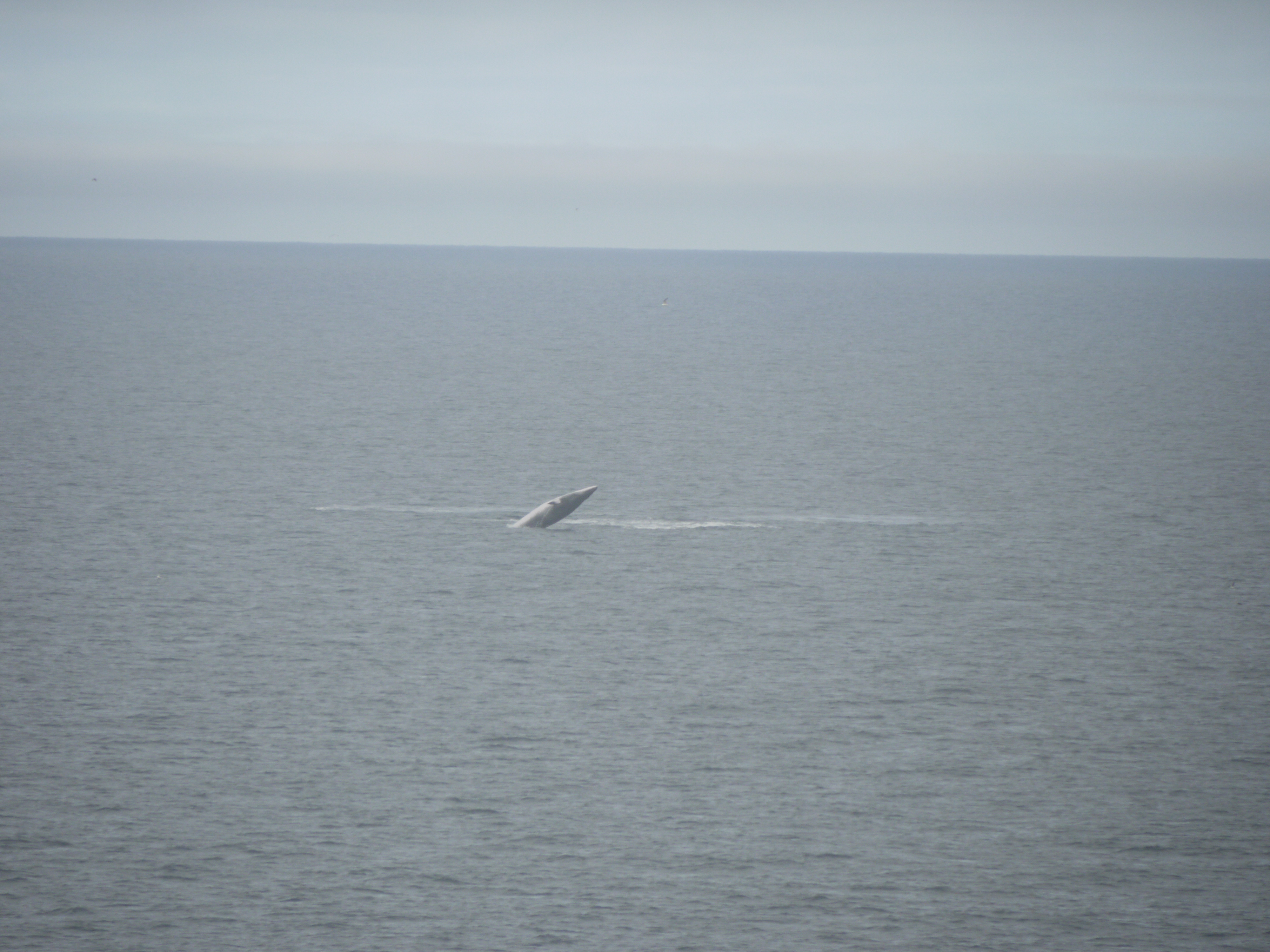 A Minke Whale breaches off of the starboard bow. Aboard the USCGC Healy icebreaker in the Bering Strait region.