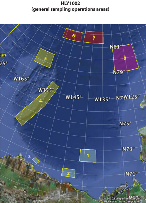 This is a Draft Map of Sample Priority Areas for the International Continental Shelf Survey made by Cruise Chief Scientist Brian Edwards.