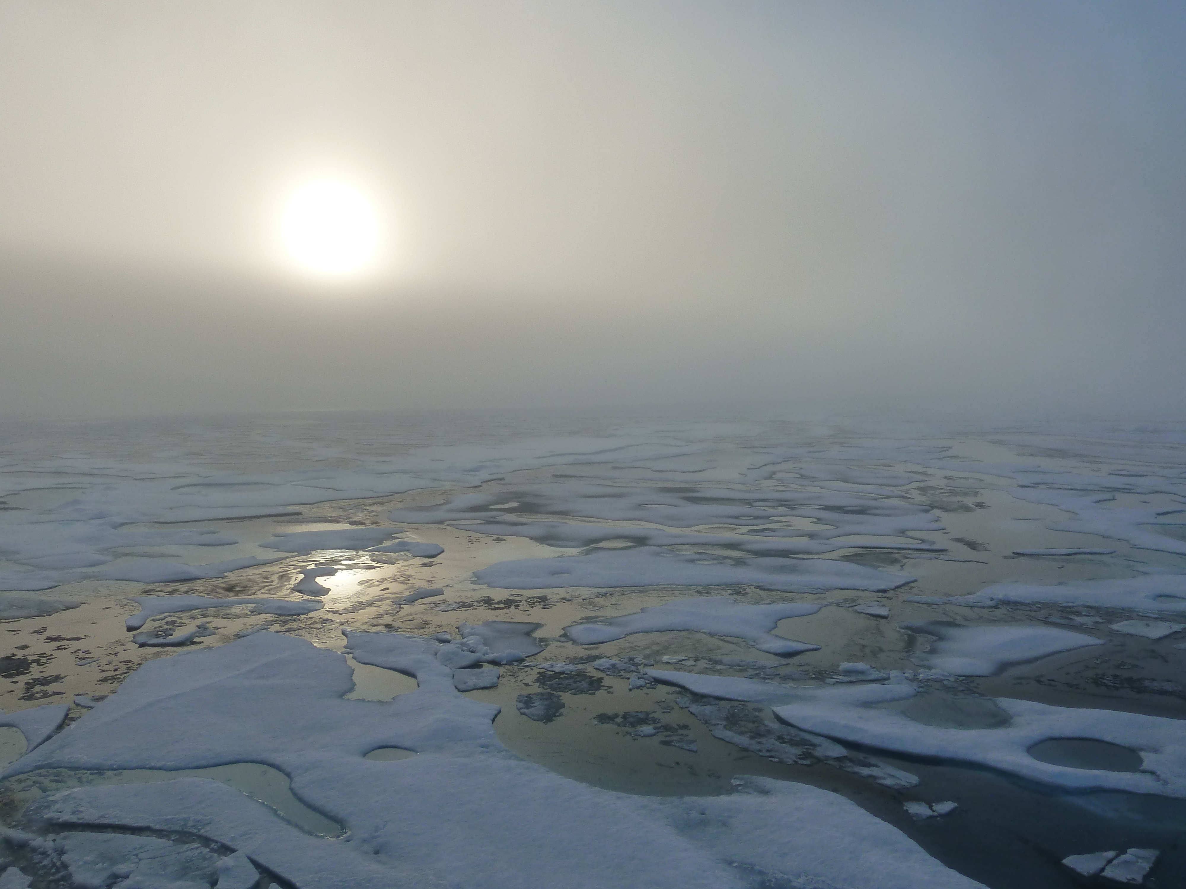 Bill Schmoker: "The low-angle sun filtered by fog produced some neat lighting effects on the ice." Aboard the USCGC Healy icebreaker in the Beaufort Sea.