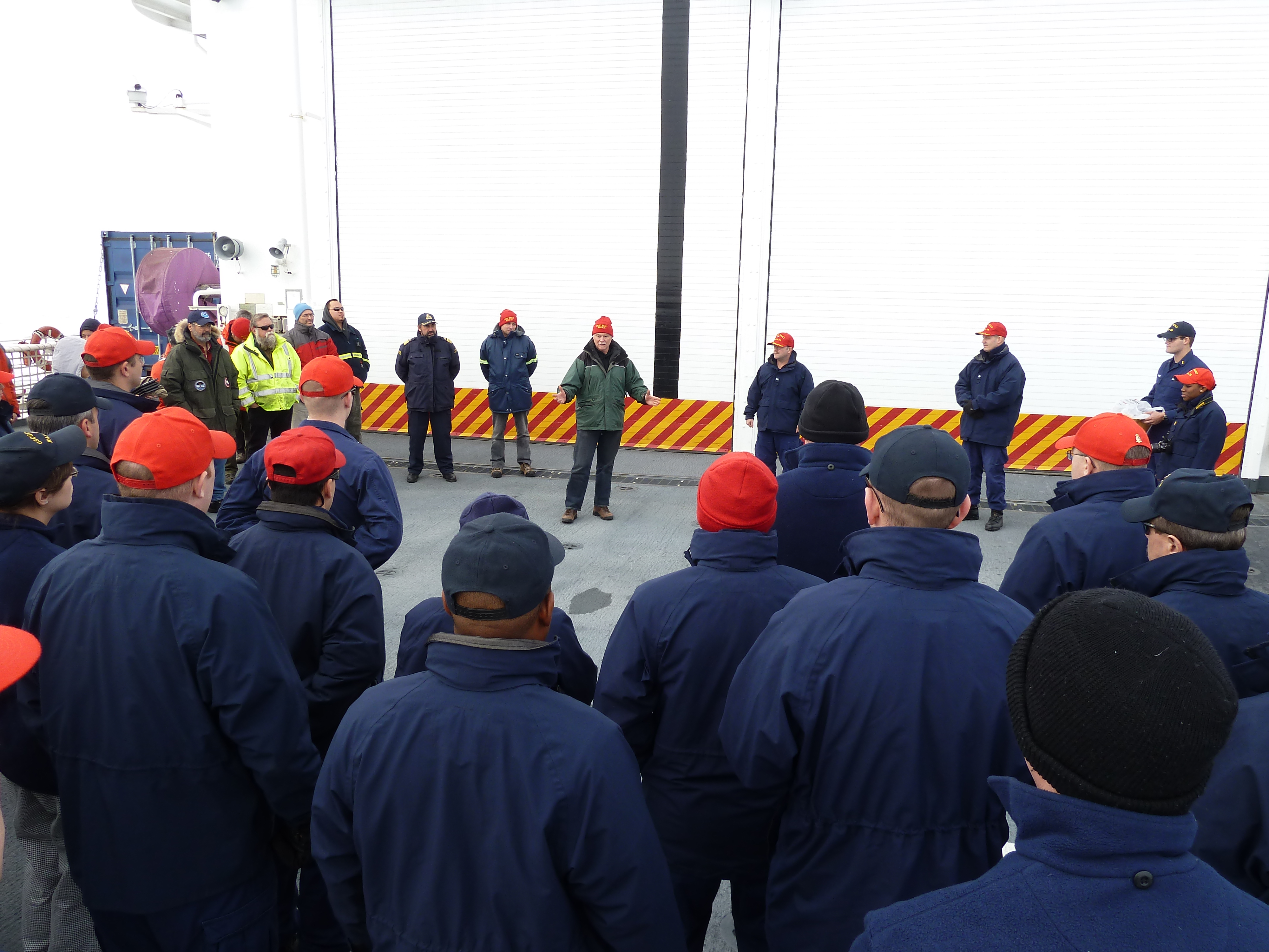 Chief Scientist Brian Edwards thanks the Healy's captain and crew for their support of the expedition. Aboard the USCGC Healy icebreaker in the Arctic Ocean.