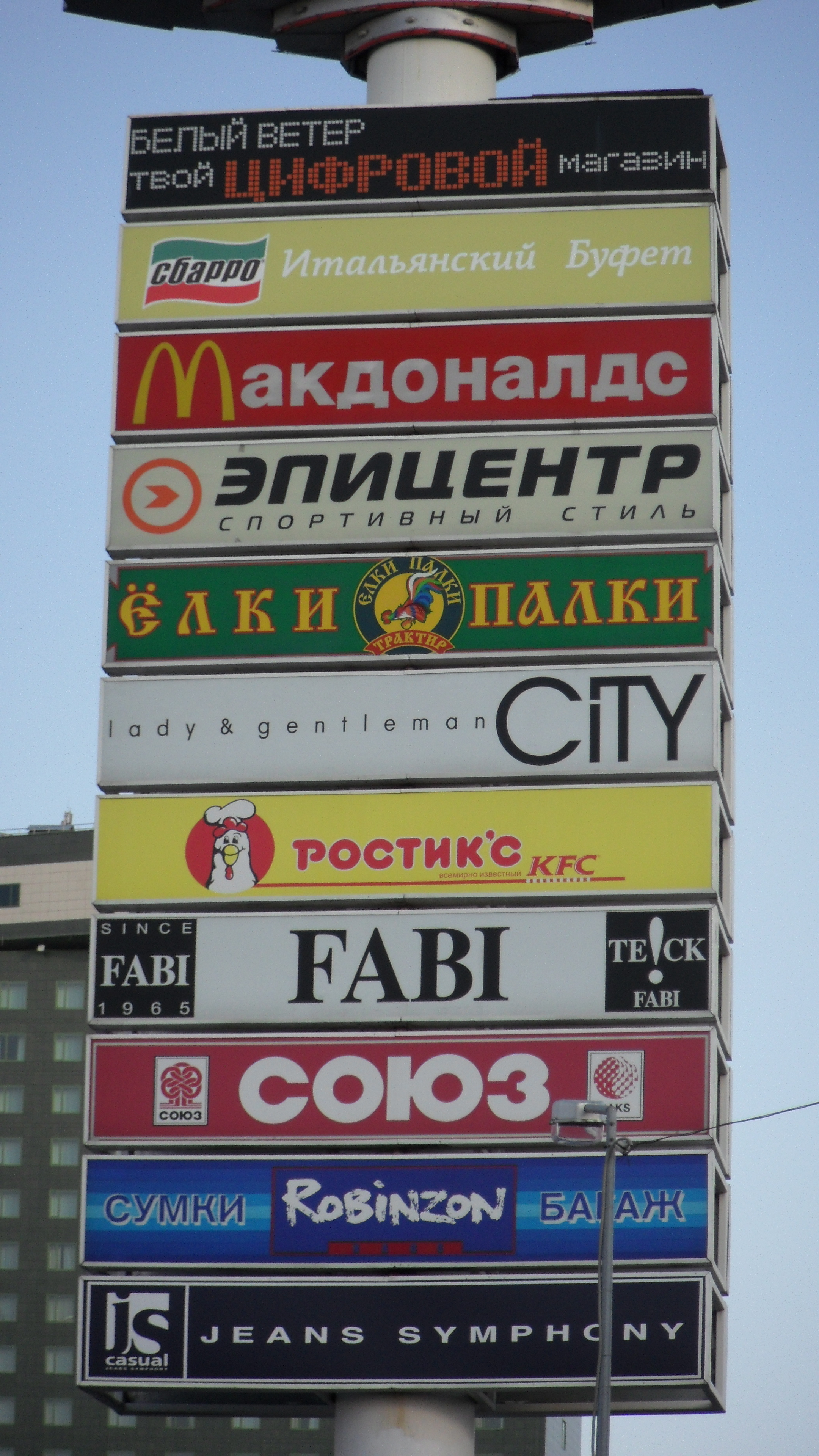 A shopping center has some familiar logos. Moscow, Russia.