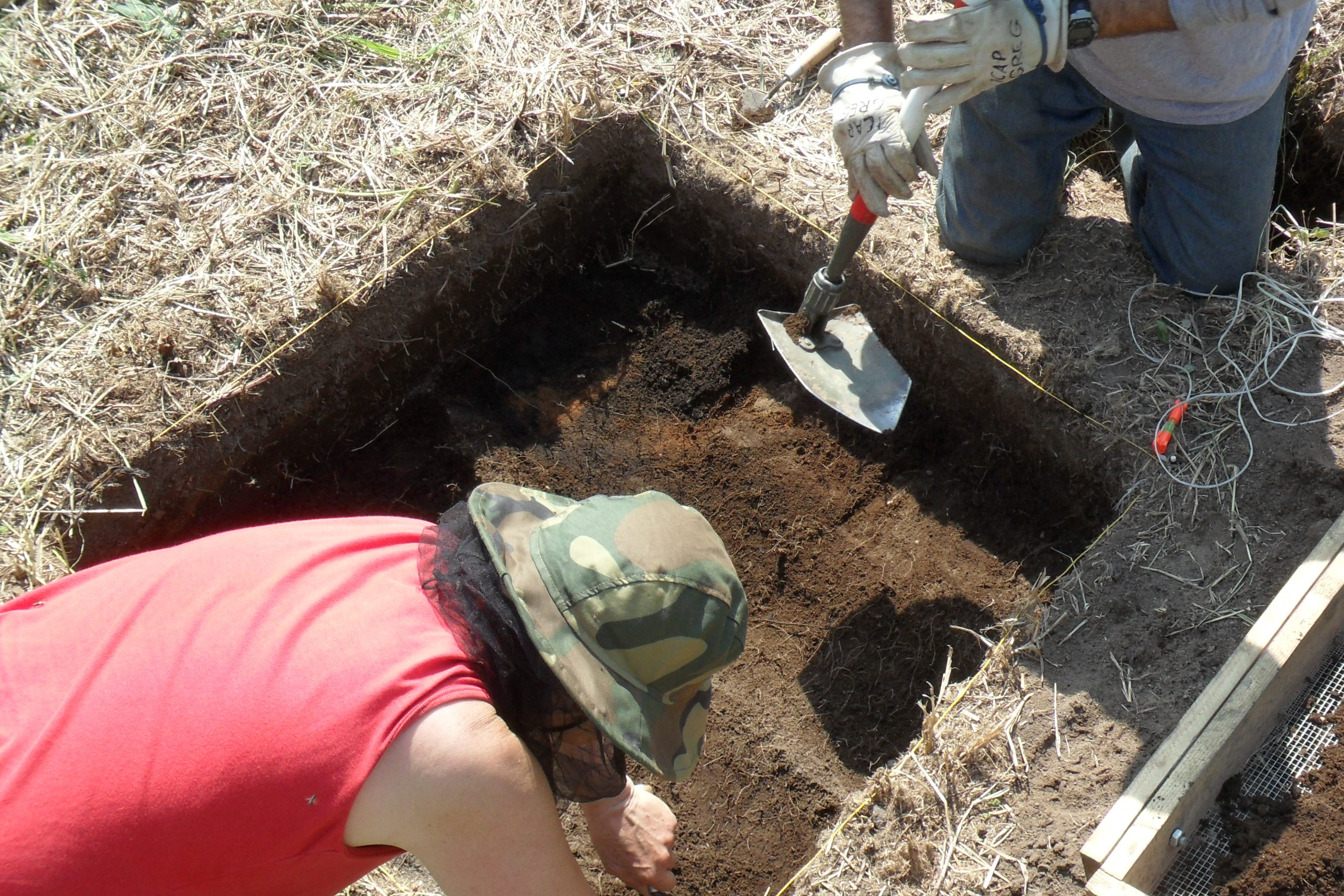 Jody Bougeois and Greg Korosec work on the second level of the excavation. Stolbevaya, Russia.