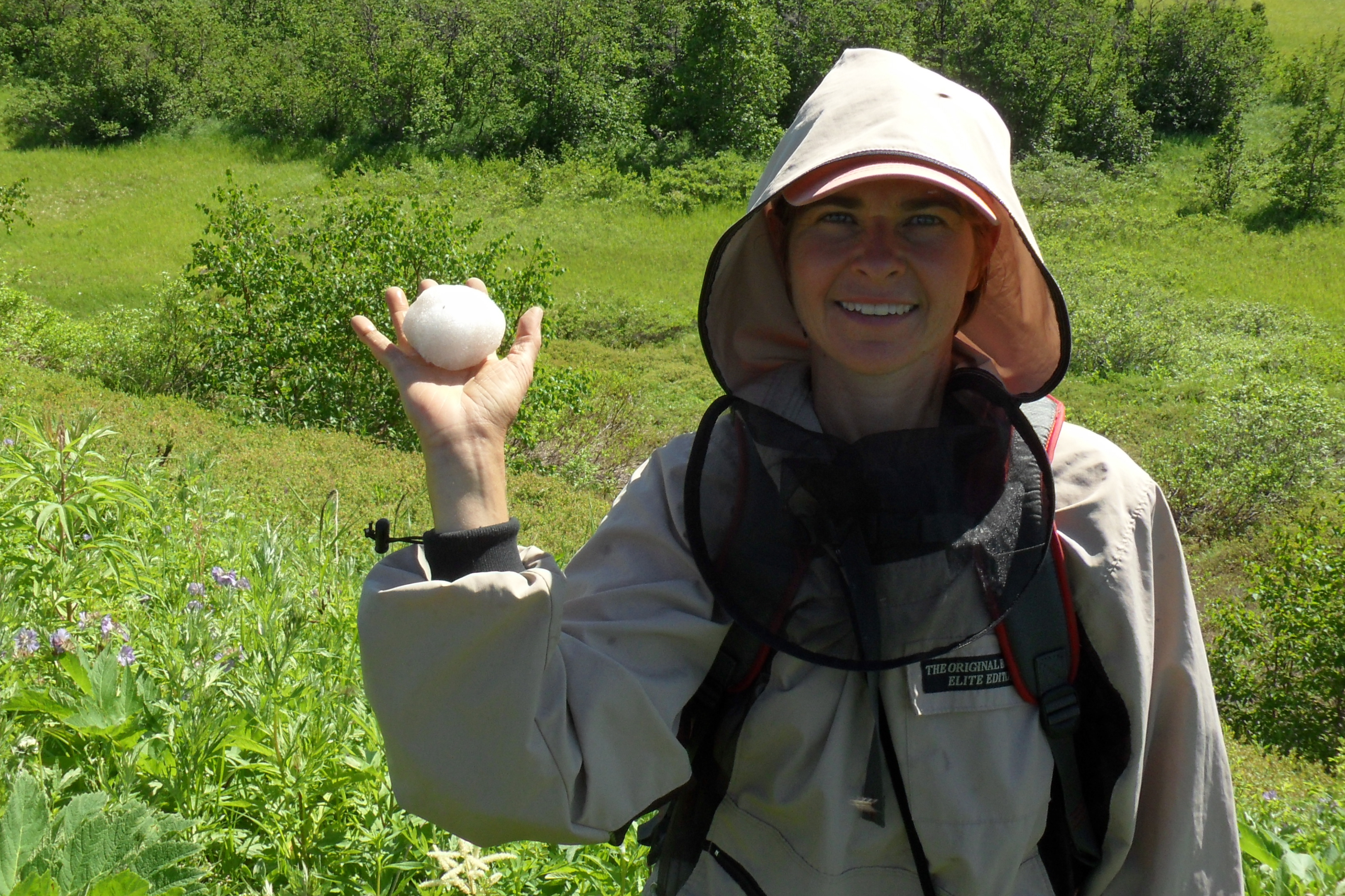 Claude Larson holds a snowball. Stolbevaya, Russia.