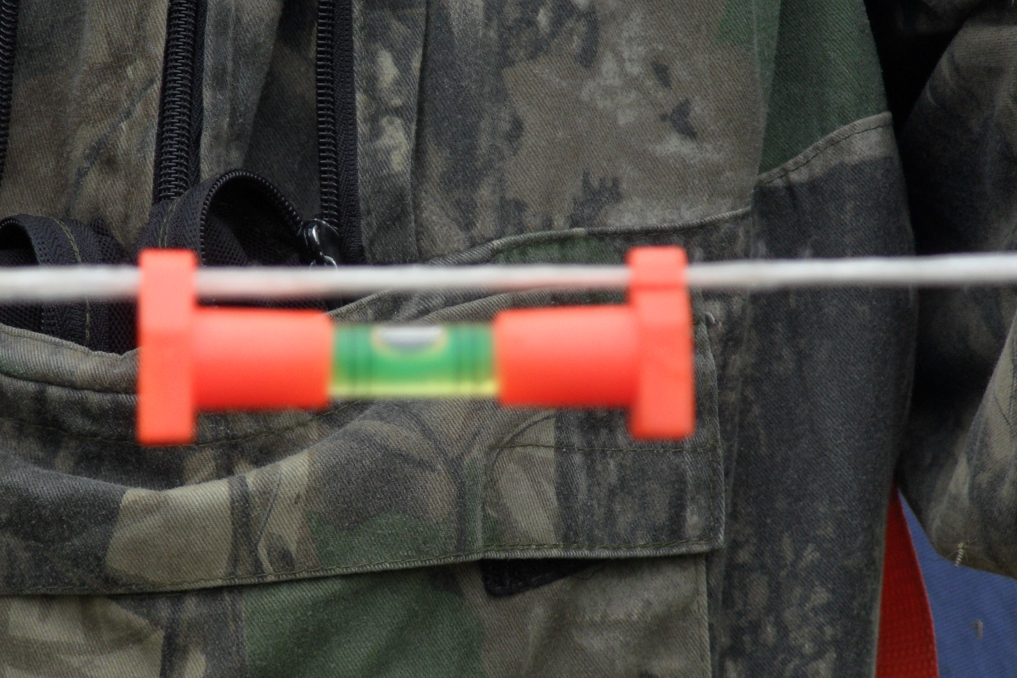 In order to measure depth, a line level is used in controlled excavations. Stolbevaya, Russia.