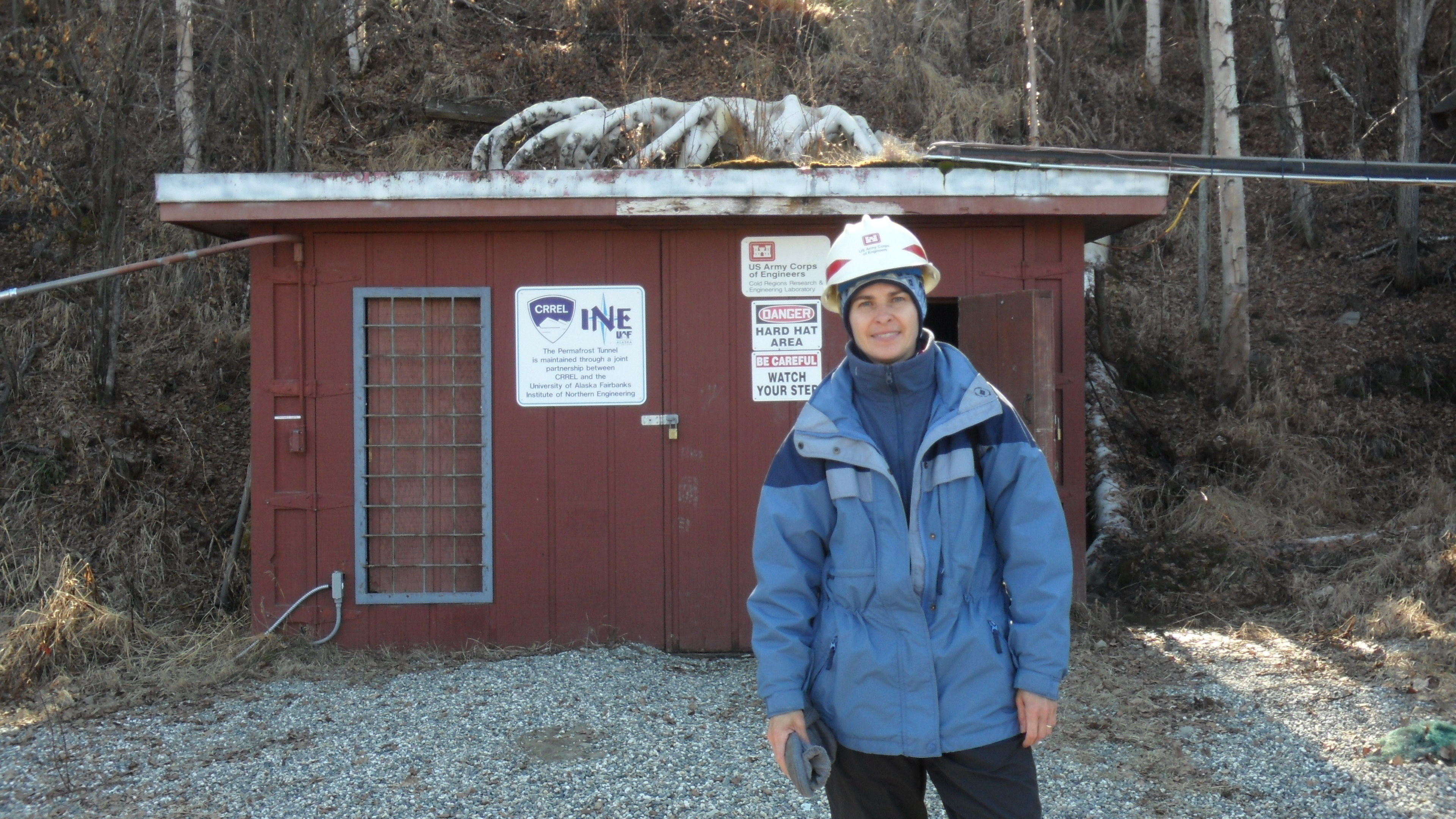 Claude Larson and the PolarTREC teachers prepare to enter the CRREL Permafrost Tunnel in Fox, Alaska.