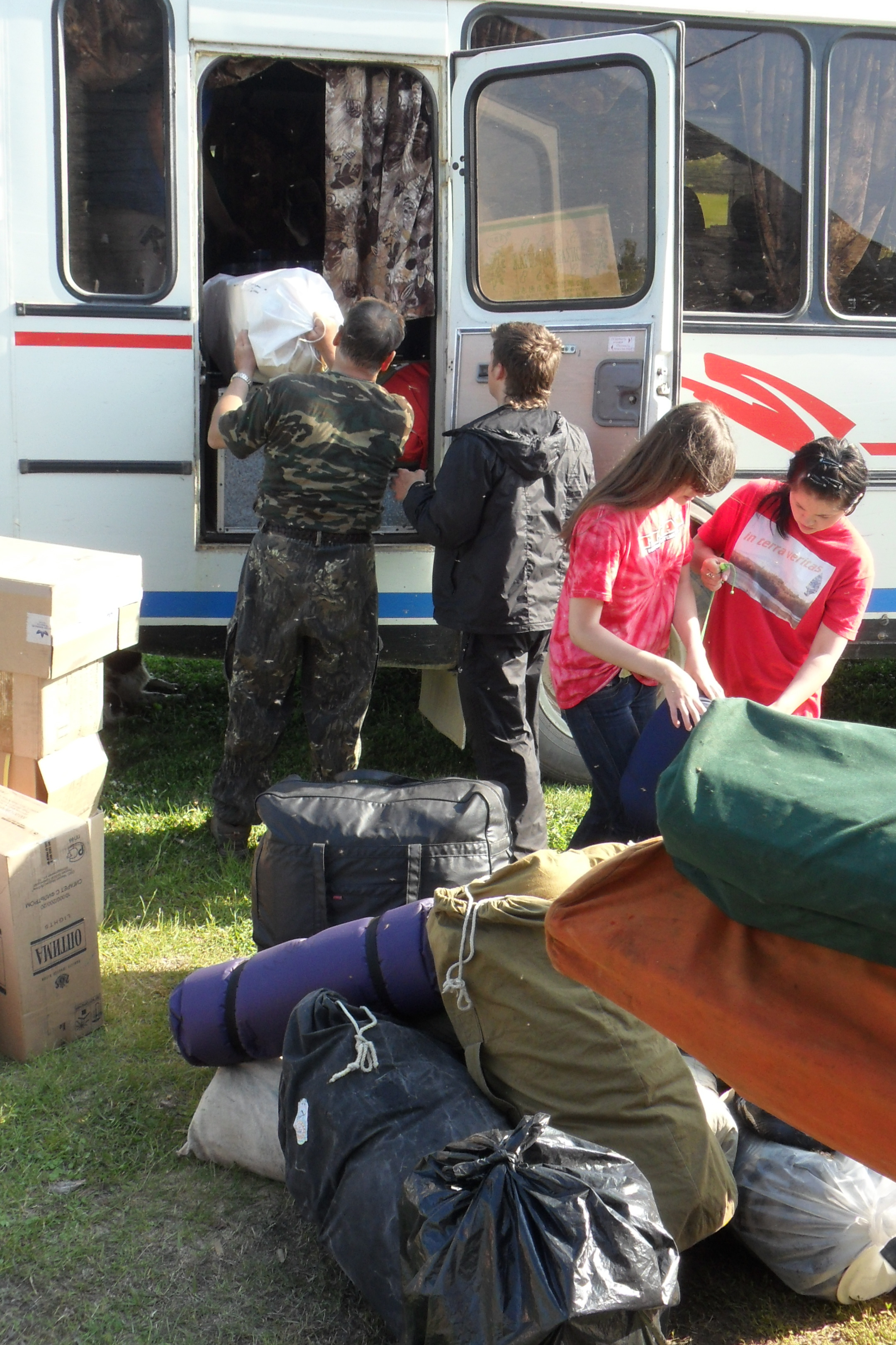The students load the bus to head to Ust-Kamchatsk. Ushki Lake, Russia.