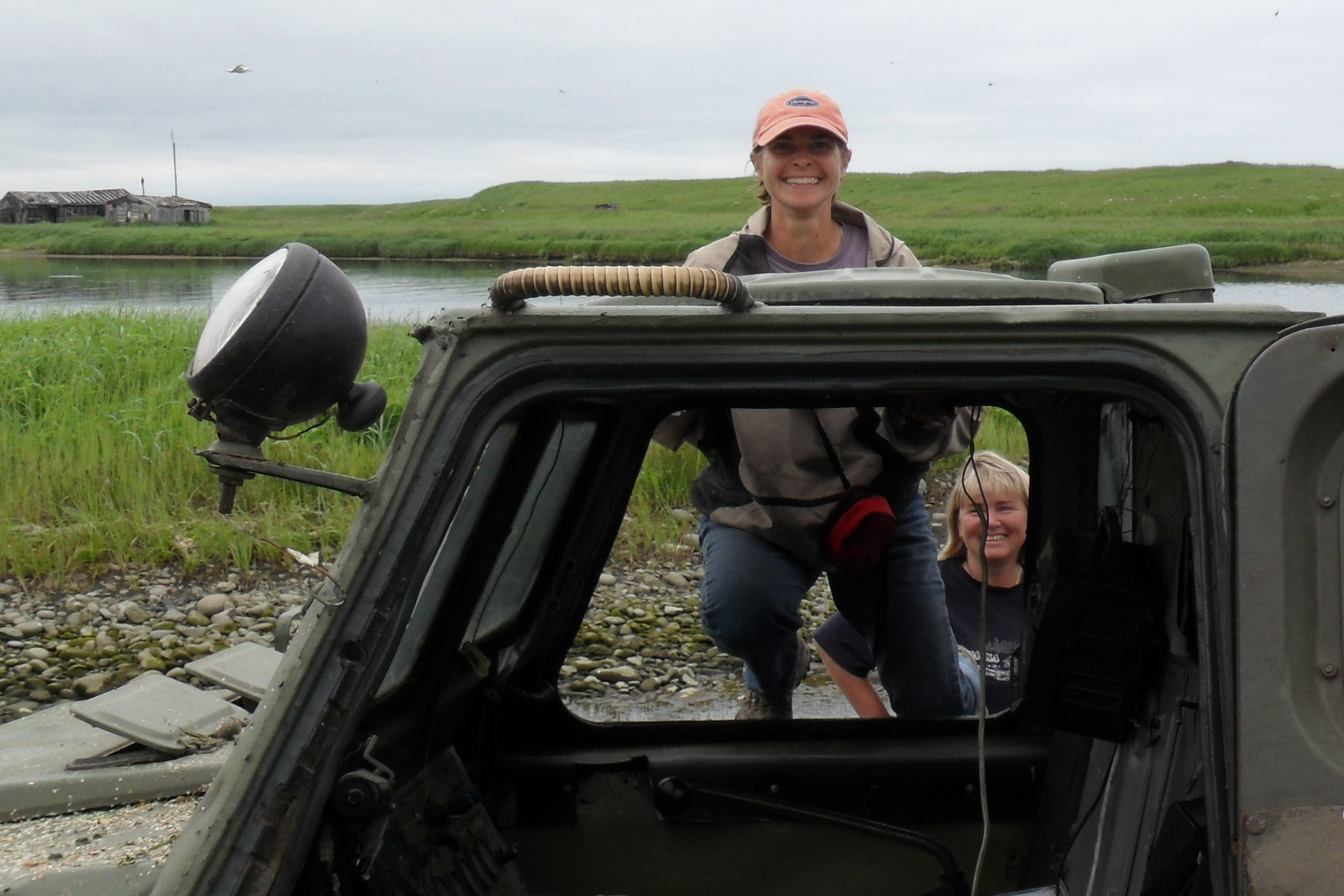 Claude Larson climbs in the front seat of the vesdehod tank that will take her away. Stolbevaya, Russia.
