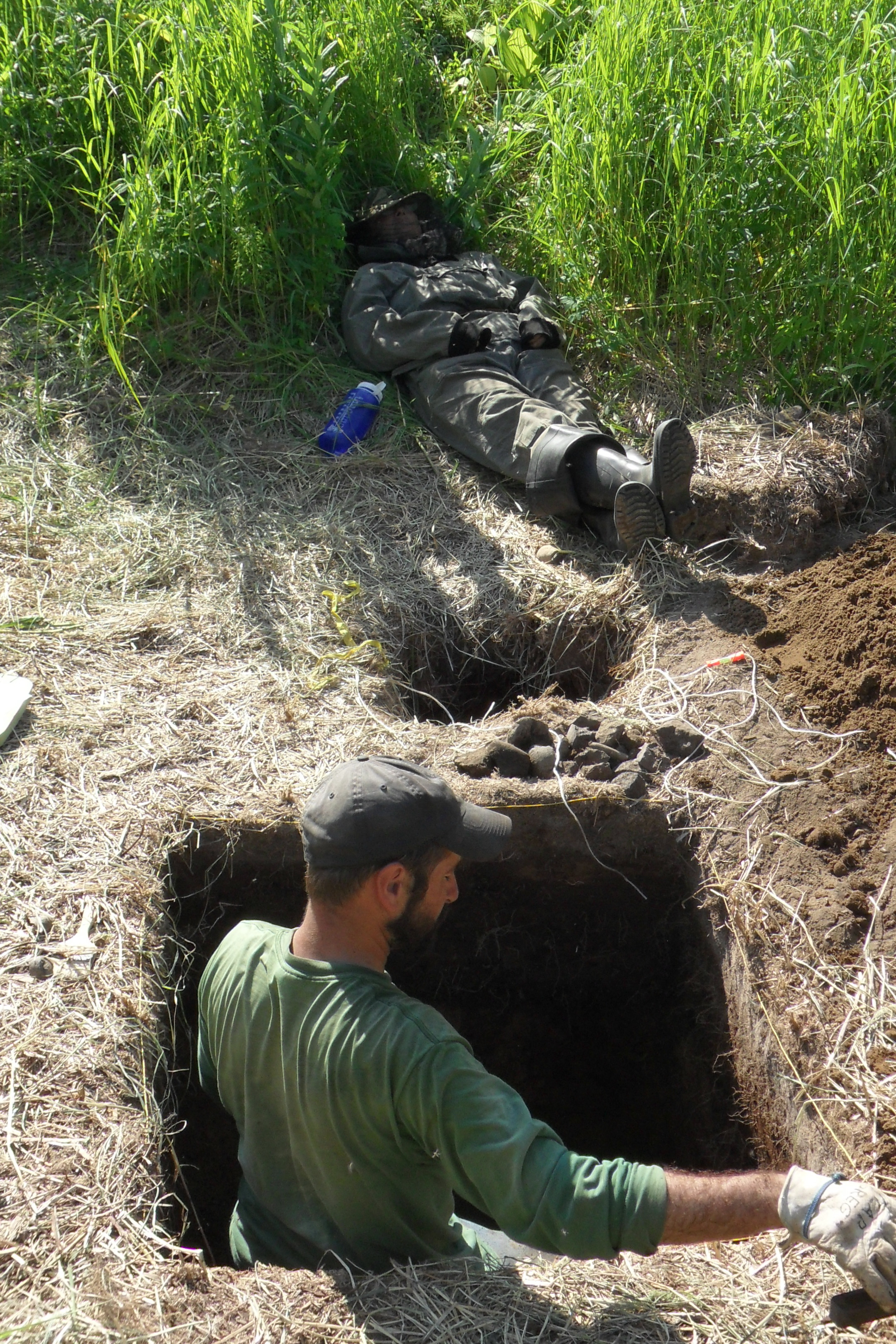 Greg Korosec digs as Jody Bougeois naps. Stolbevaya, Russia.