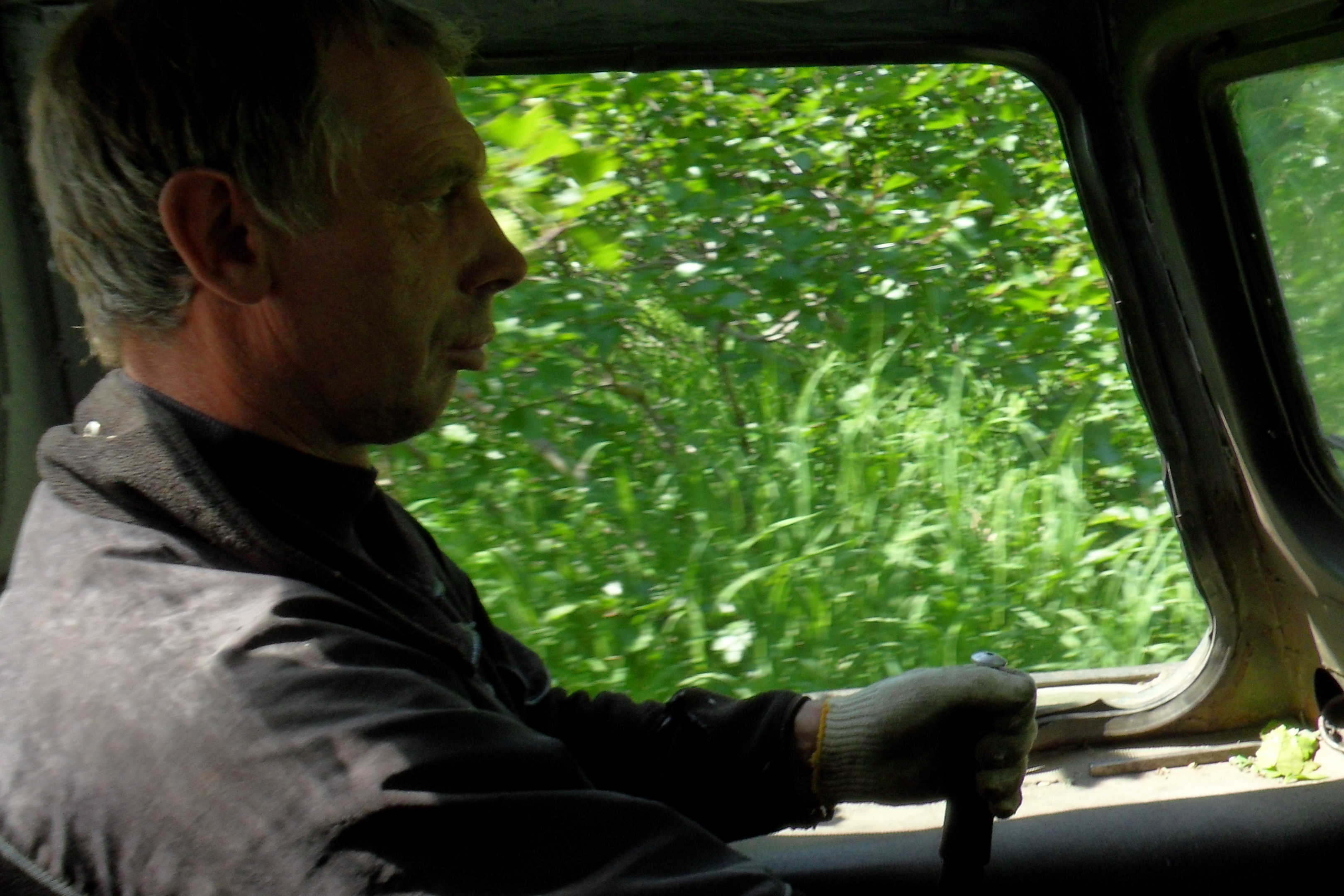 Inside the cab the vesdehod tank driver keeps the team on course. Kamchatka Peninsula, Russia.