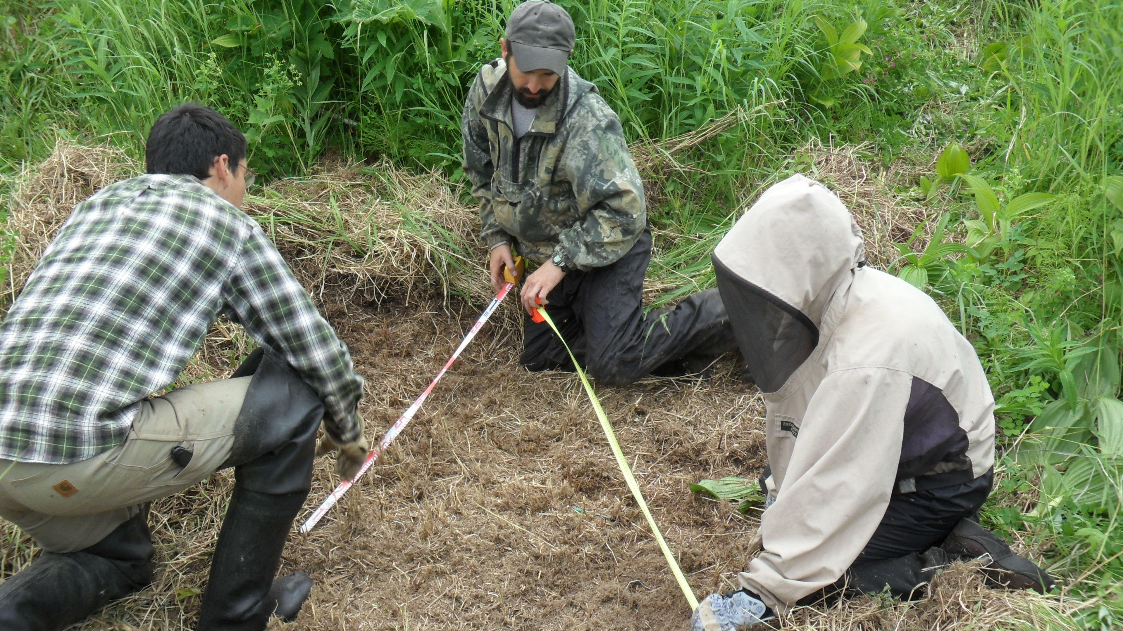 Greg Korosec, Sean-Paul Le Selle, and Claude Larson measure the meter unit. Stolbevaya, Russia.