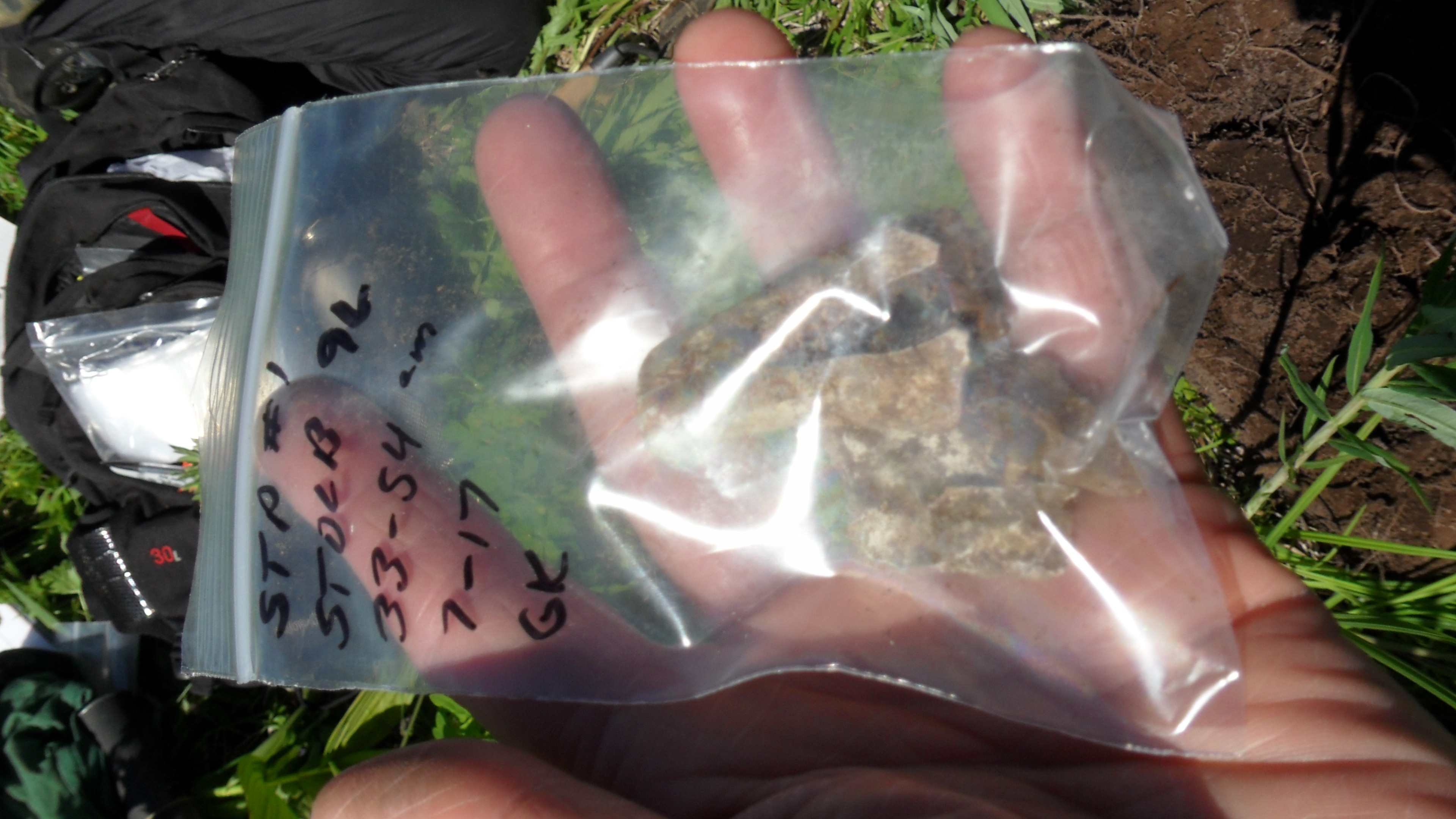 A sample bag with bone fragment artifacts. Stolbevaya, Russia.