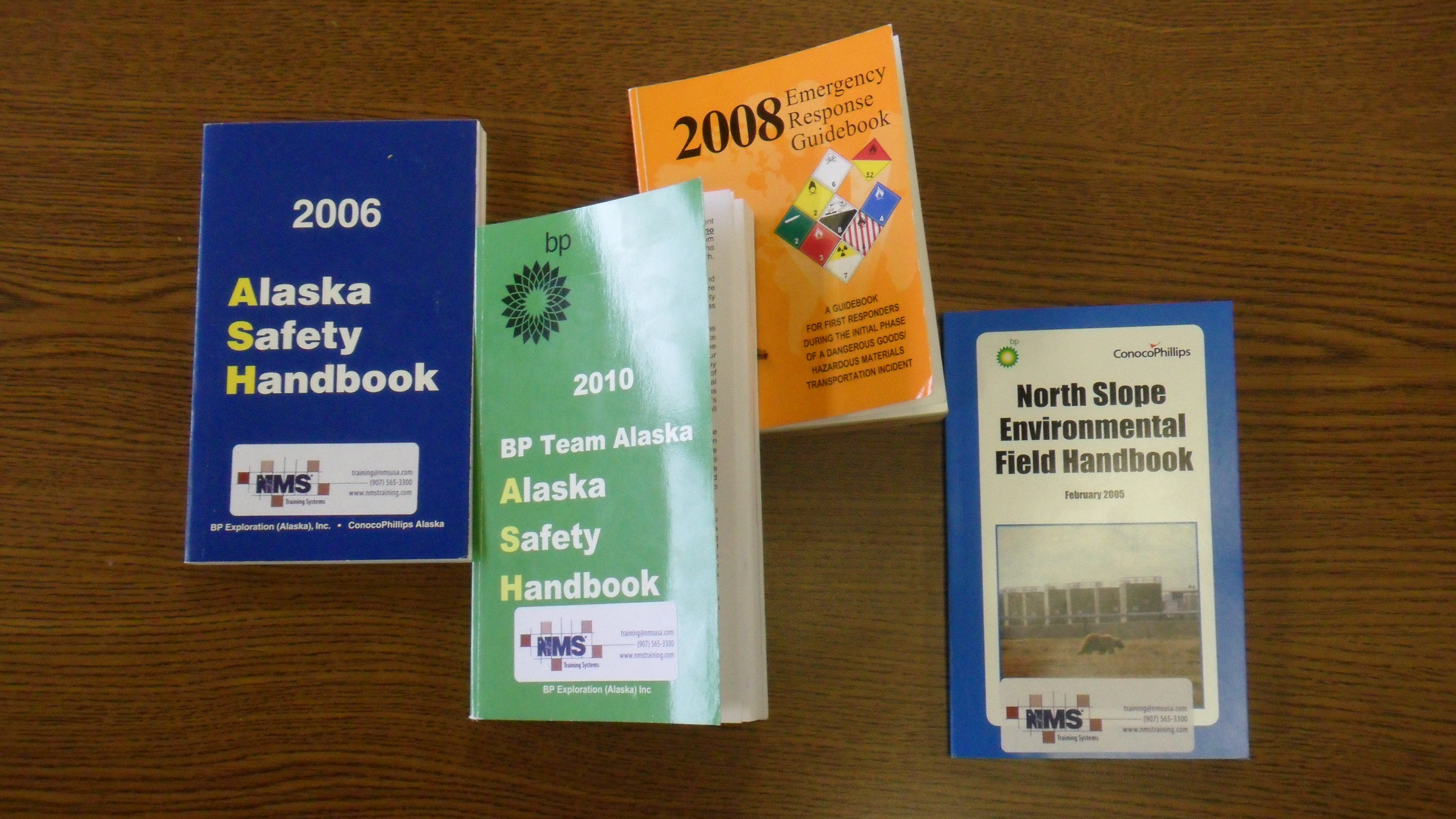 The books issued during the team's NSTC (North Slope Training Cooperative) training addresses safety and environmental issues in and around the North Slope oil fields. Anchorage, Alaska.