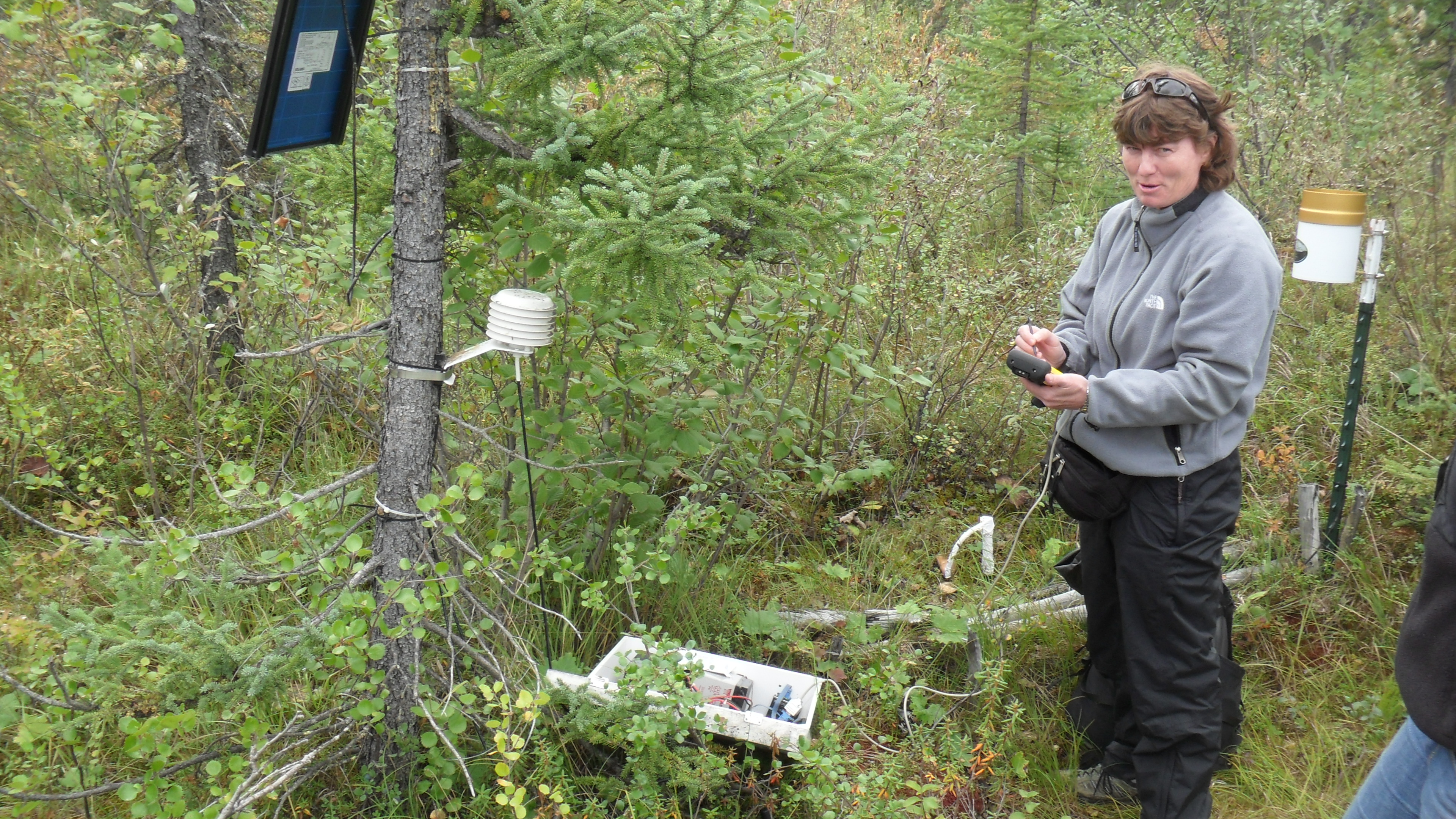 Dr. Cathy Sebold gathers data at the first of her monitoring sites on the way to Prudhoe Bay. Dalton Highway, Alaska.