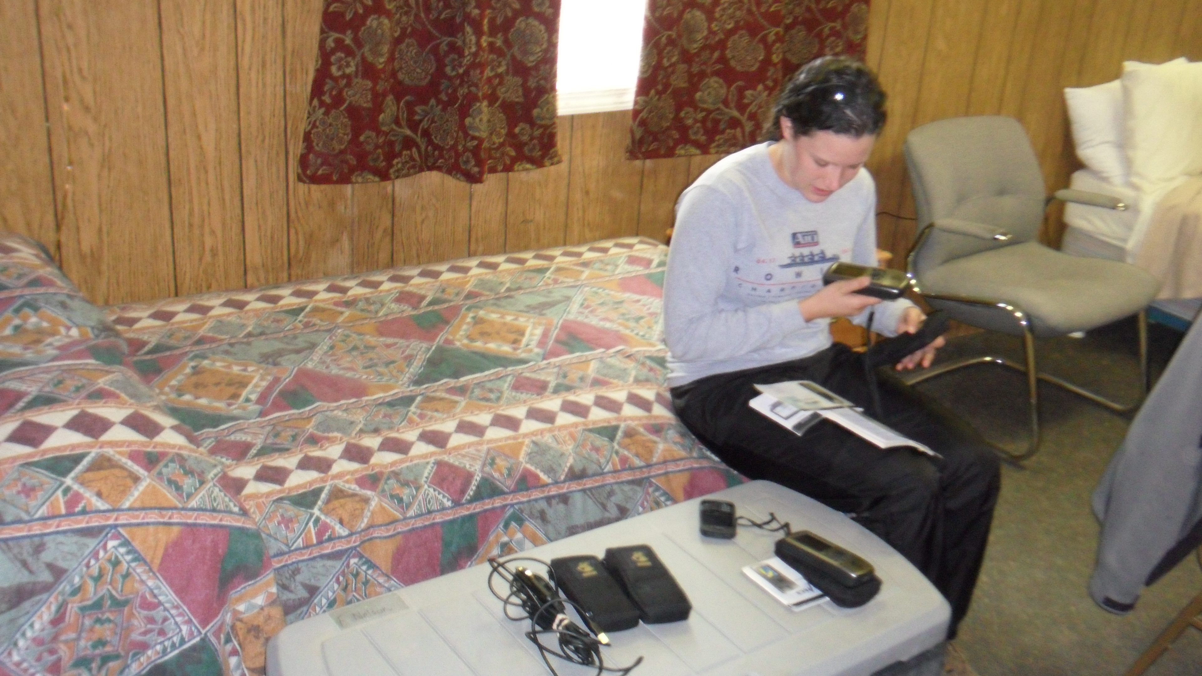 Kelsey enters coordinates and orients herself with the GPS units the team will use in the field. Dalton Highway, Alaska.