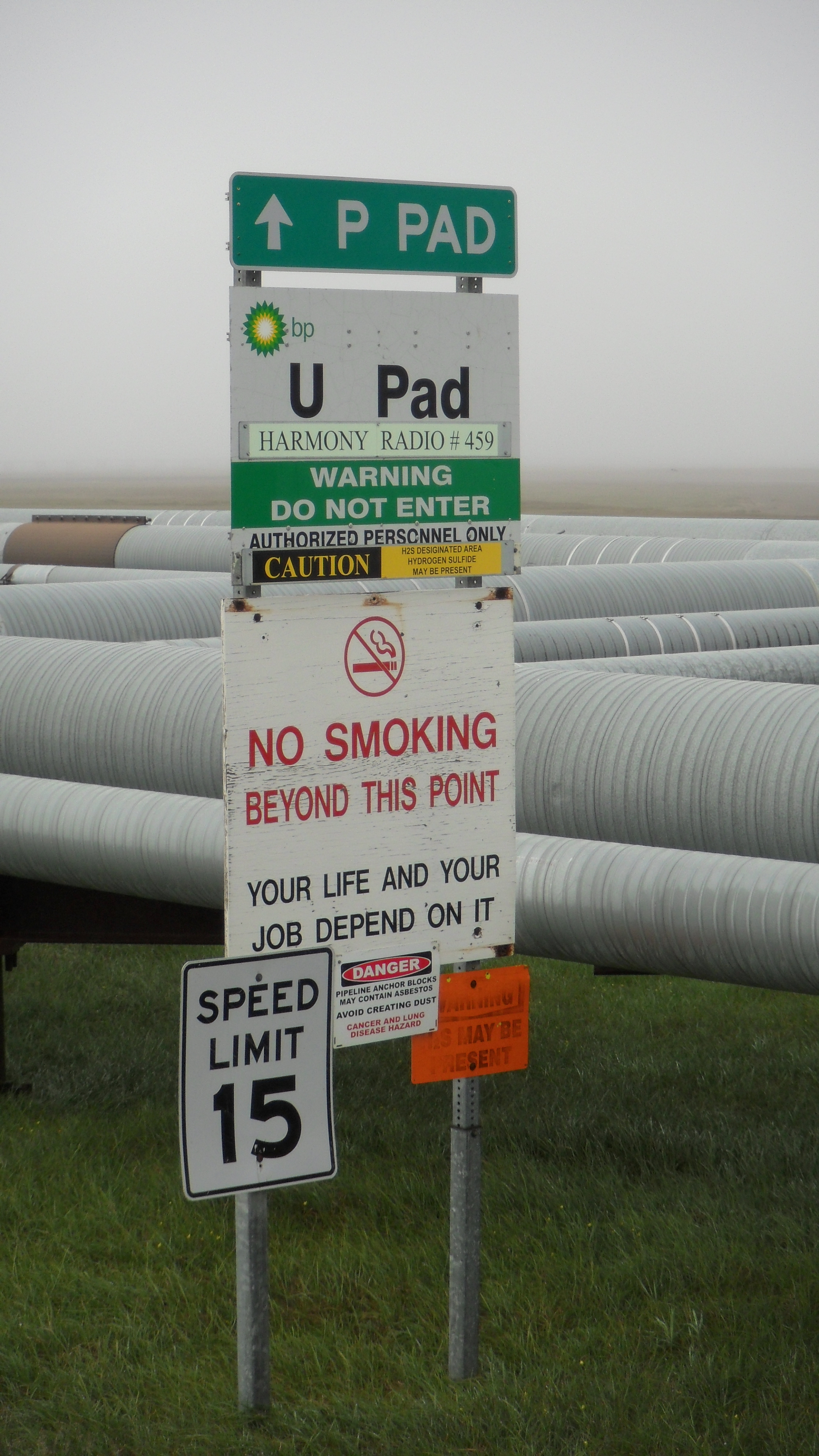 The road network in Prudhoe Bay connects a number of well pads. The team would radio the pad operator to receive permission before each crossing. Prudhoe Bay, Alaska.