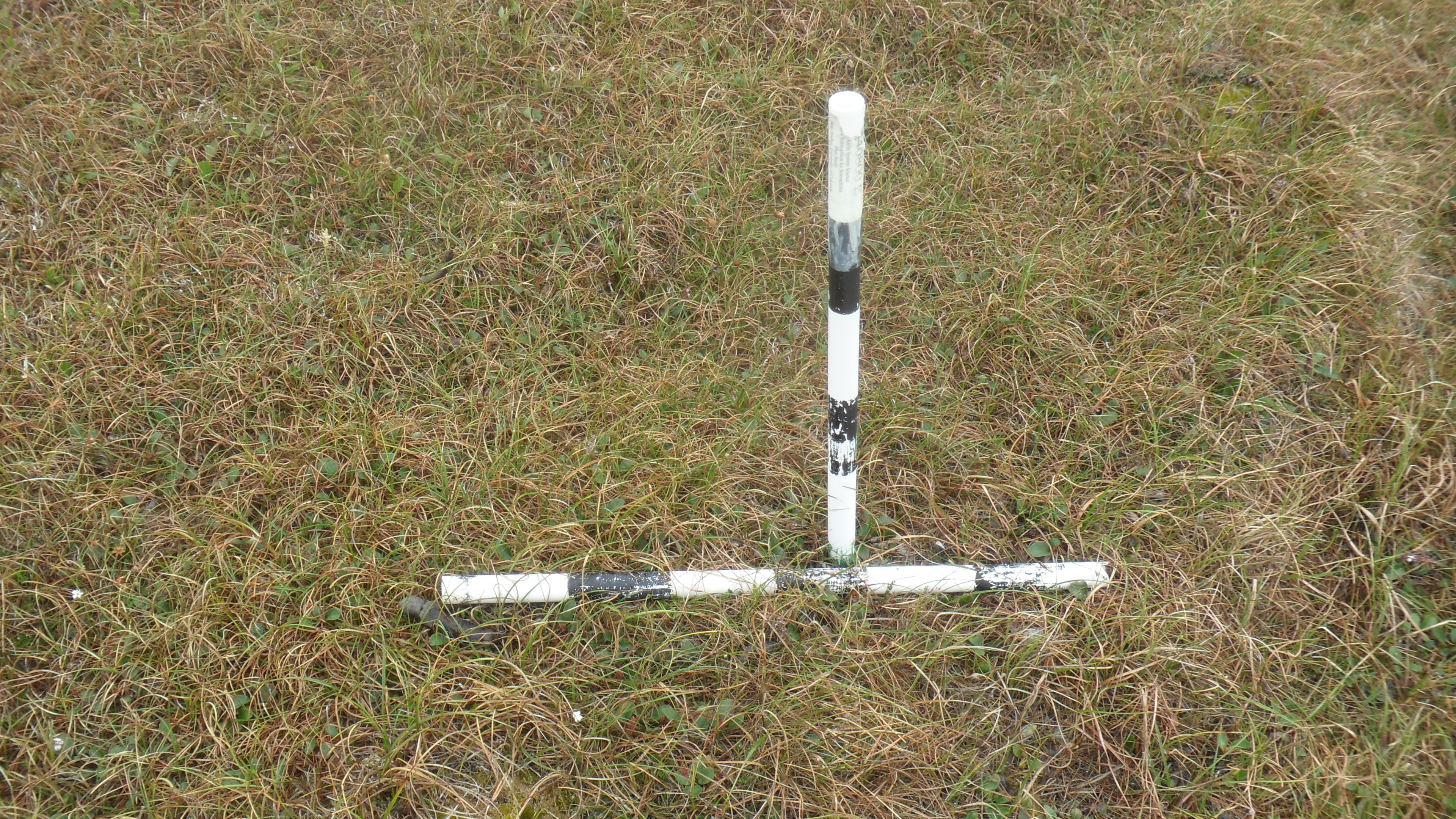 The gray wolf feces located to the bottom left of the broken pole was found at the West Dock site. The scat matches the specs for gray wolves, which have been spotted in the area. Prudhoe Bay, Alaska.