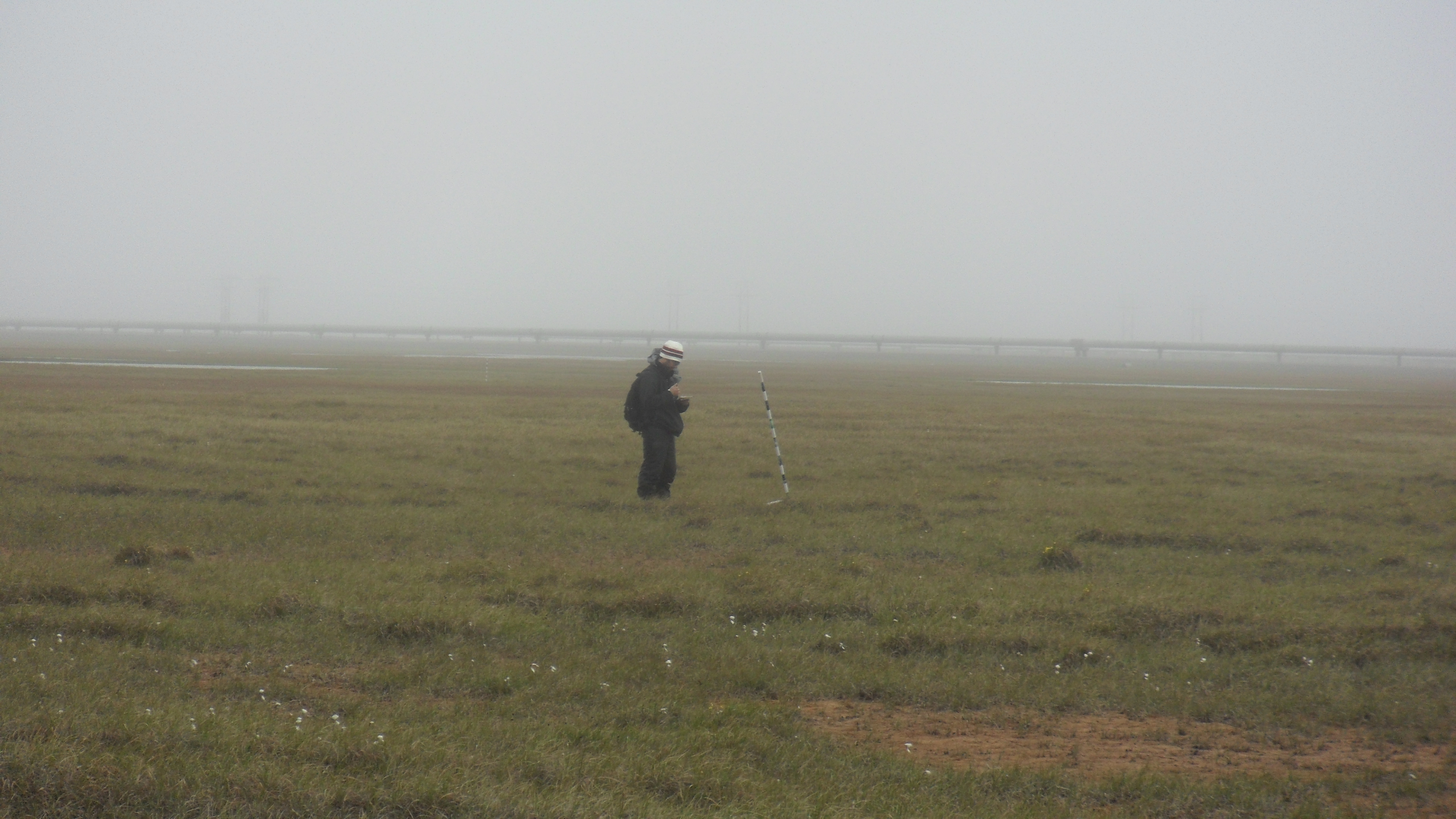 Josh Dugat: "Elliot and I tackled the 1 sq km West Dock CALM site in three and a half hours. Here, we were probing 100 meters from one another." Prudhoe Bay, Alaska.