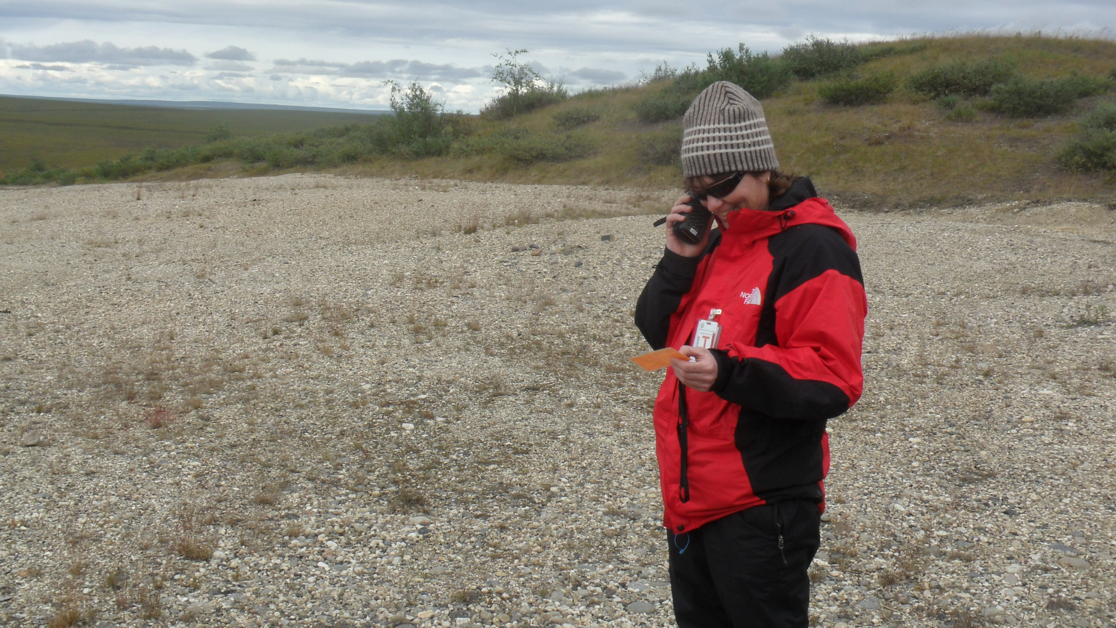 Josh Dugat: "Cathy, Elliot, Kelsey and I waited for an hour after our scheduled chopper pick-up time. After we had not heard from Anna and Dimitry, we pulled out the satellite phone to find out more. It turns out the chopper had to land immediately after take off due to bad weather." Toolik Field Station, Alaska.