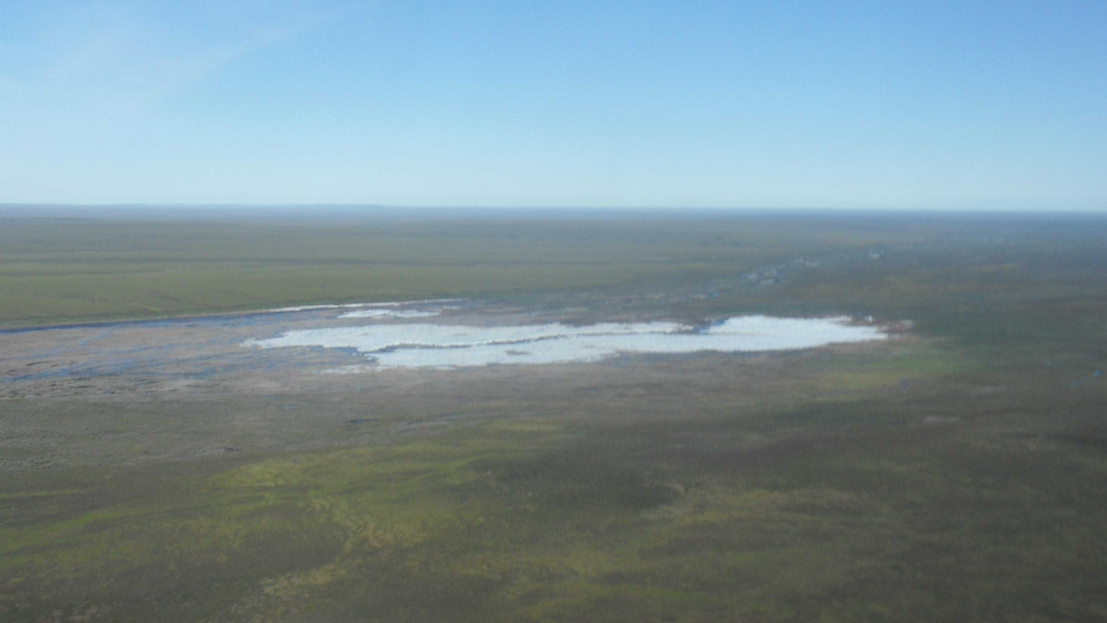 This example of aufeis, which forms when upwelling ground water is trapped on the surface and freezes. In a helicopter near Toolik Field Station, Alaska.