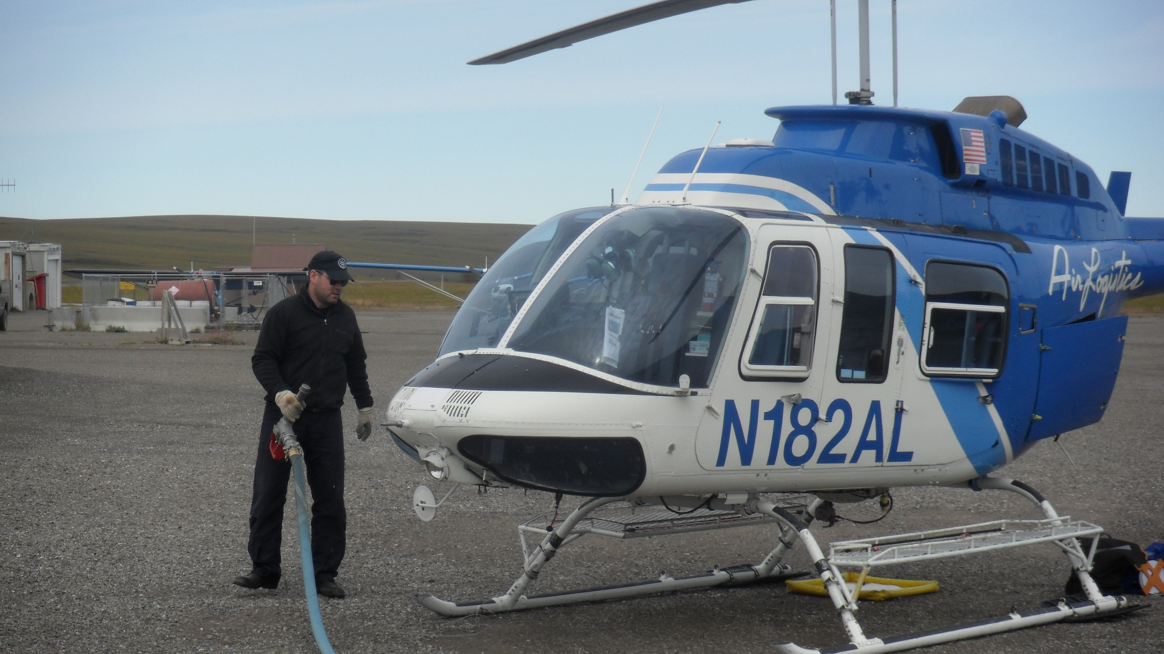 Jonas, the team's helicopter pilot, refuels. Toolik Field Station, Alaska.